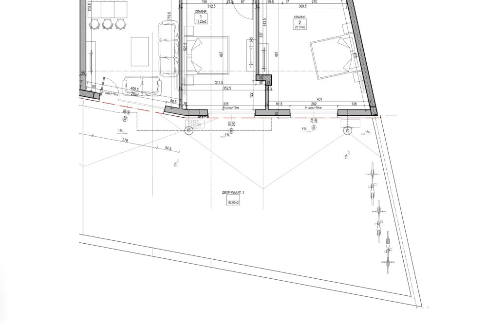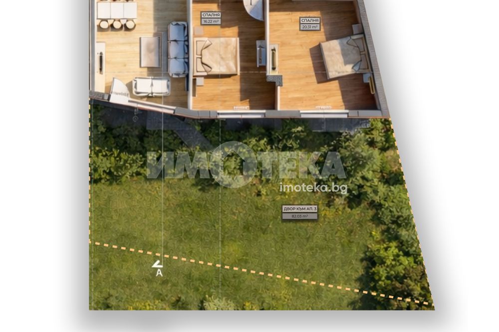 Предлагаме за продажба прекрасен тристаен апартамент със ЗП 100,82 кв.м. и собствен двор 82,03 кв.м. и разпределение както следва: всекидневна с кухненски бокс, две комфортни спални, склад, коридор, две бани с тоалетни и прилежащ двор. Ю/И изложение.