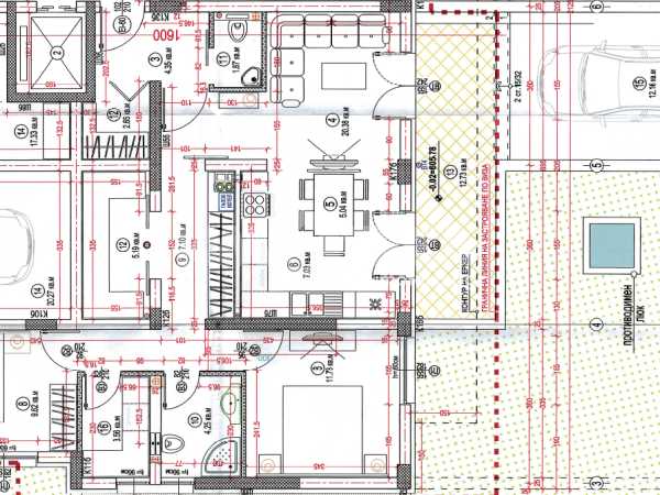 Шестетажна жилищна сграда, състояща се от две секции с функционални жилища.