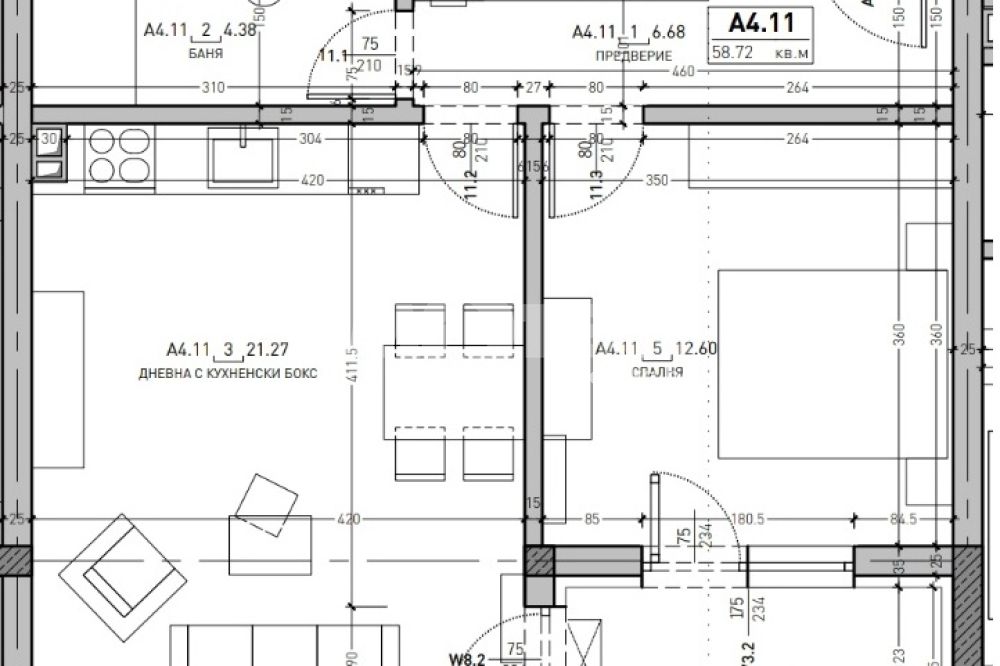 Разпределение: входно антре, просторна дневна с кухненски бокс, спалня, баня с тоалетна, балкон.
