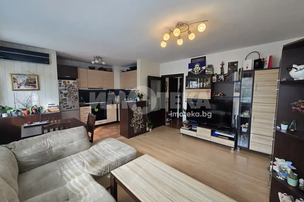 Прекрасен двустаен апартамент със застроена площ от 55 кв.м. Жилището се състои от входно антре, дневна с трапезария и кухненски бокс, спалня, баня с тоалетна и тераса. Жилището е обзаведено. Към апартамента има мазе с площ от 6 кв.м.
