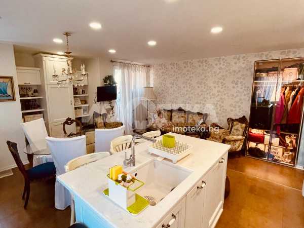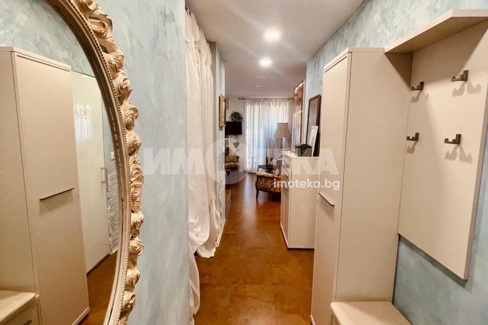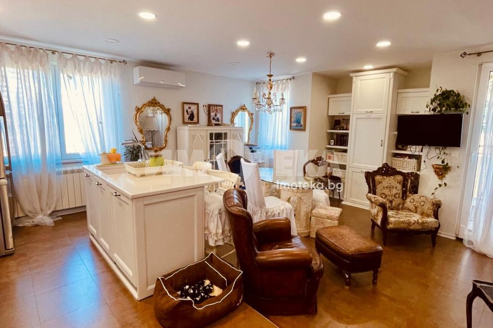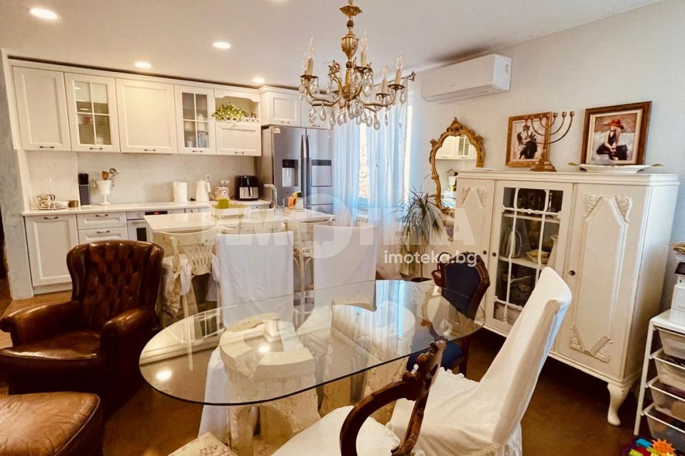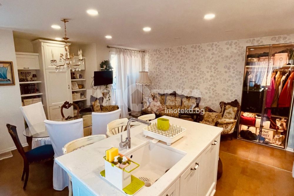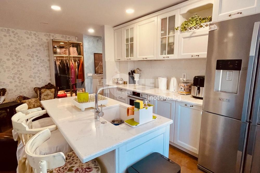 Жилището е изпълнено с висок клас материали, включва винтидж акценти и естествен камък в кухнята. Апартаментът е перфектно поддържан, светъл и много комфортен – идеален както за живеене, така и за инвестиционни цели.