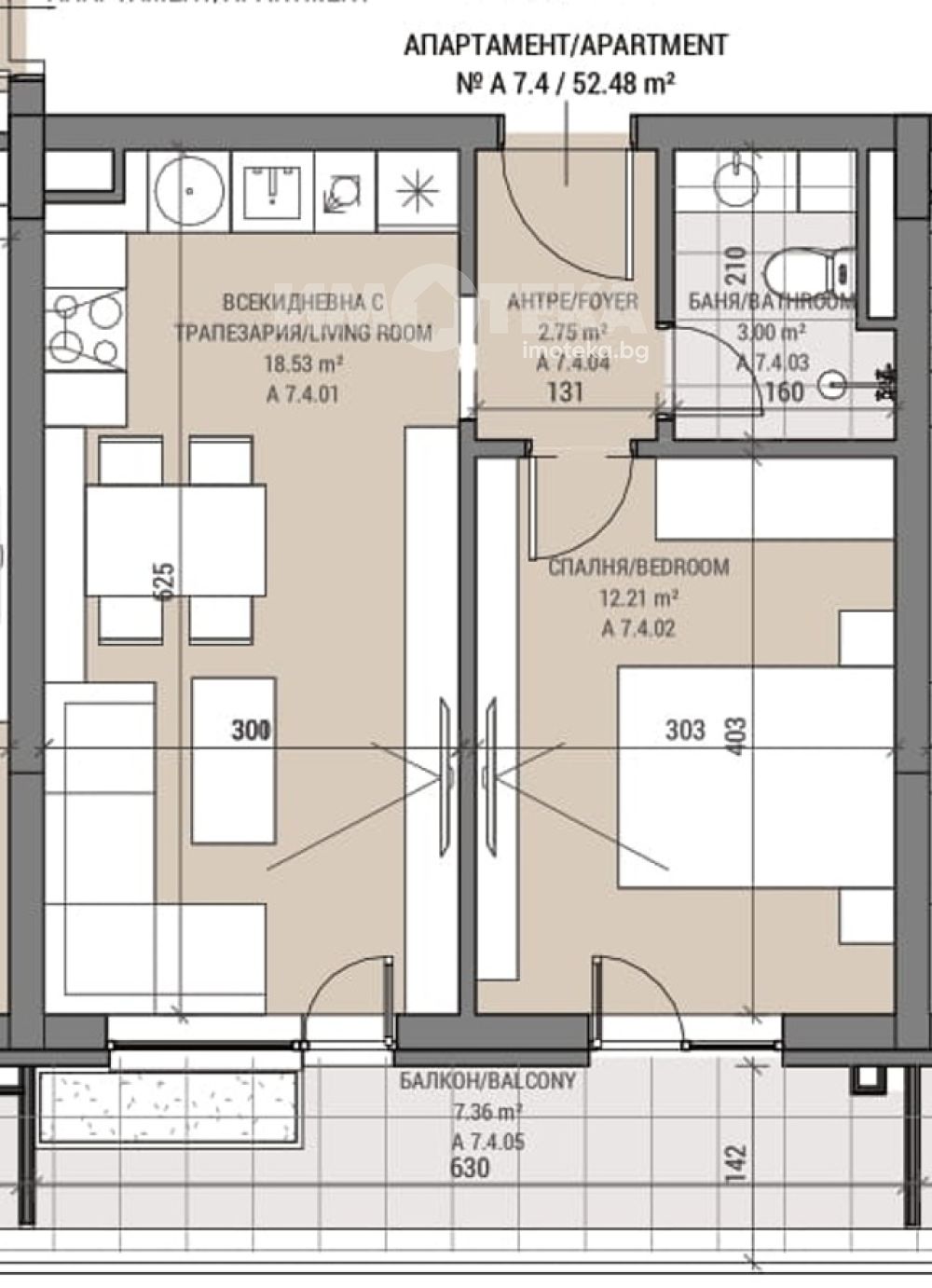 Апартаментът се предлага заедно с подземно паркомясто на цена от 25000 евро.