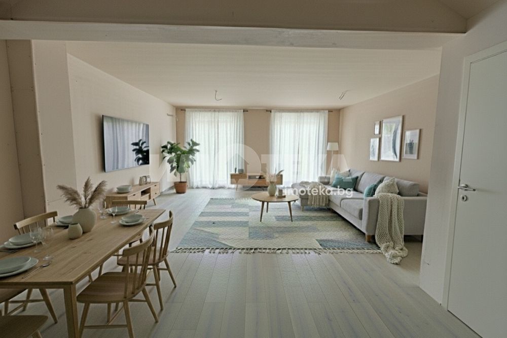 Мезонет със самостоятелен вход, пред АКТ 16. Апартаментът е с южно изложение, което осигурява много естествена светлина през целия ден. Разпределението включва просторна всекидневна с трапезария и кухненски бокс с площ от 57 кв.м, четири големи и светли спални, една от които със собствен дрешник, три санитарни помещения, склад , както и две тераси. Към жилището има и самостоятелен двор от 35 кв.м, който допълва усещането за къща в града.