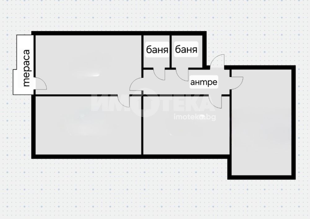 Жилището е частично обзаведено с изцяло подменена ПВЦ дограма. Нуждае се от освежителен ремонт.