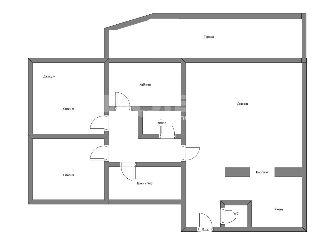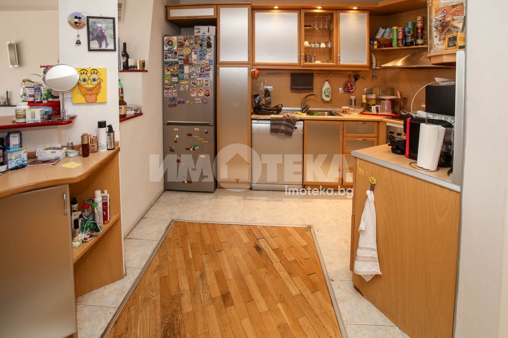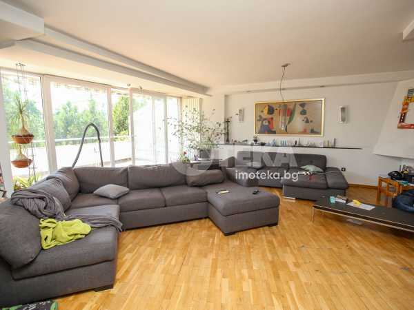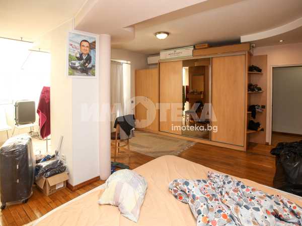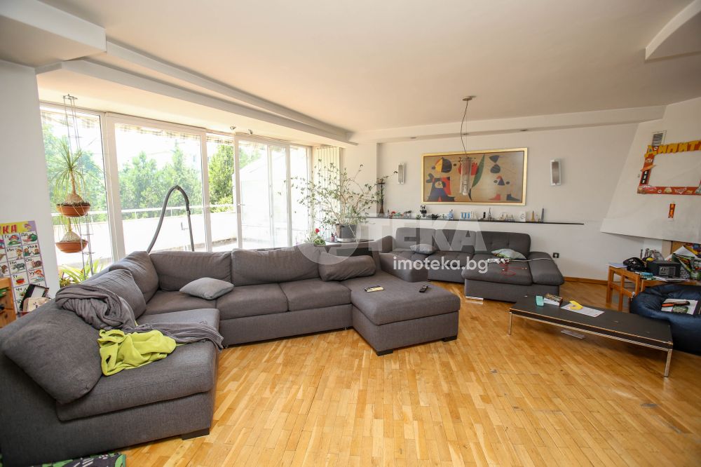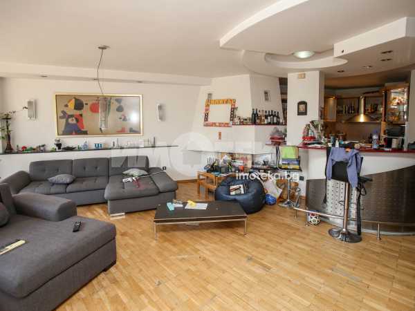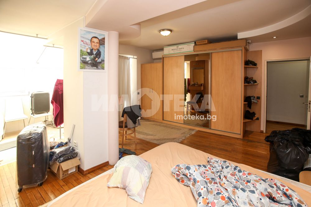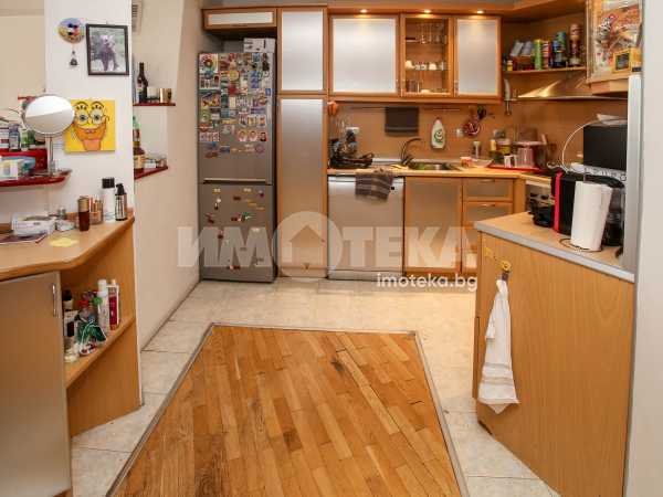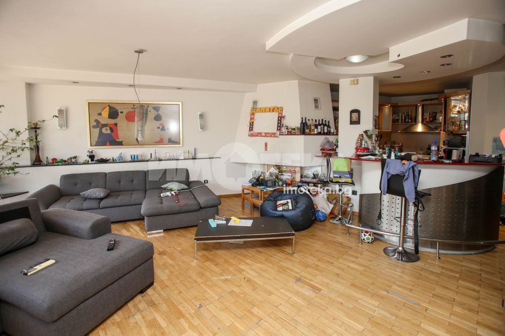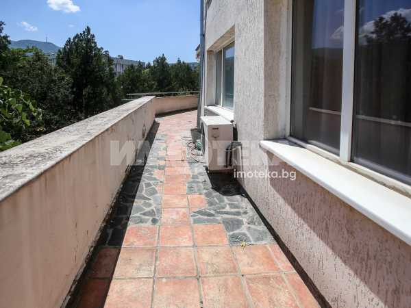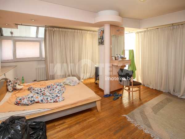 Просторен апартамент с широки пространства на спалните помещения и хола. Разпределението е следното; хол с кухненски бокс в едно /+камина/, три спални помещения, огромен дрешник в коридора пред спалните, баня/тоалена, тоалетна/душ/, просторна тераса пред всички помещения, усвоена тераса на изток и юг пред две от спалните, мазе.