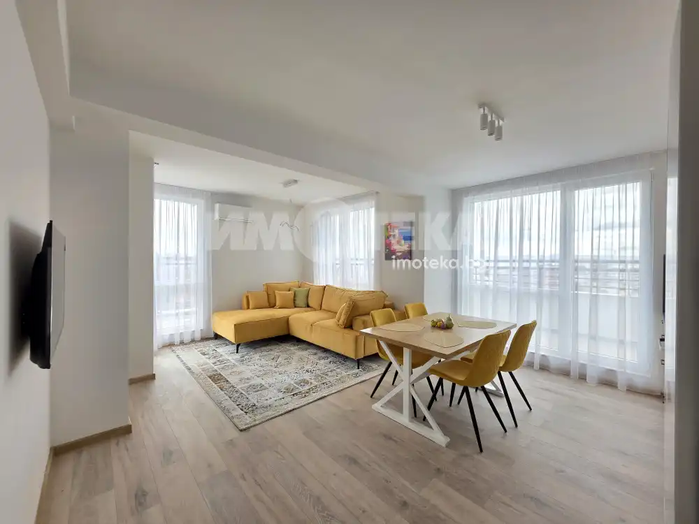Чисто нов тристаен апартамент, рзположен на висок, не последен етаж, в нова, луксозна сграда, част от малък затоврен жилищен комплкекс, с красиво аранжирана паркова среда.