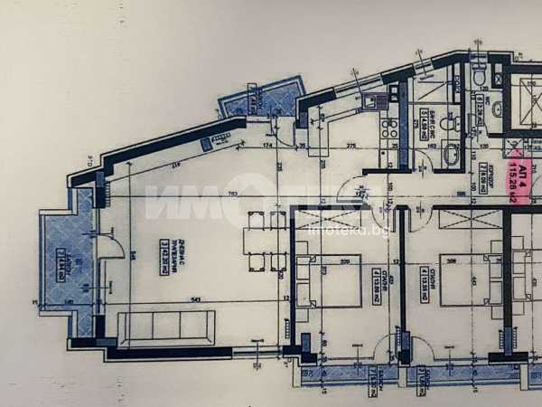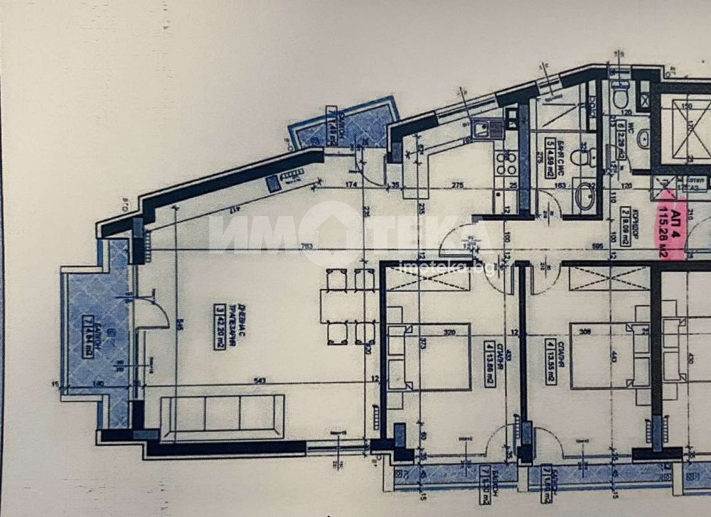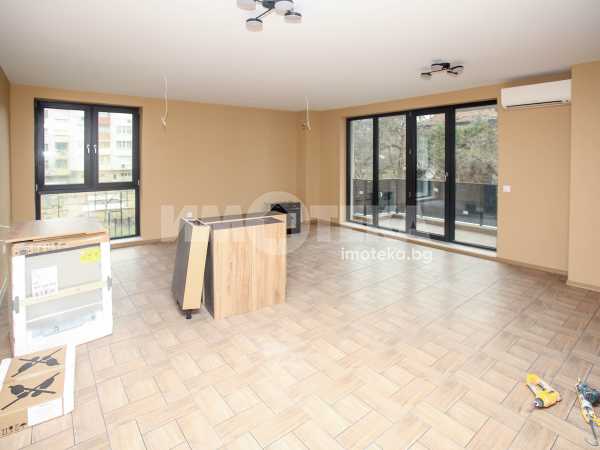 Тристаен апартамент със застоена площ от 115,28м2., с три изложения: изток, юг, запад. Имотът се предлага завършен до ключ, с монтирана кухня и обзавеждане на двете спални.