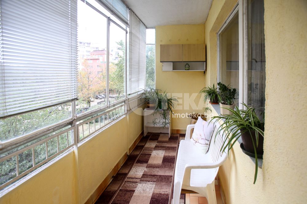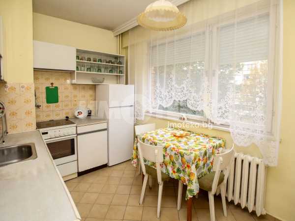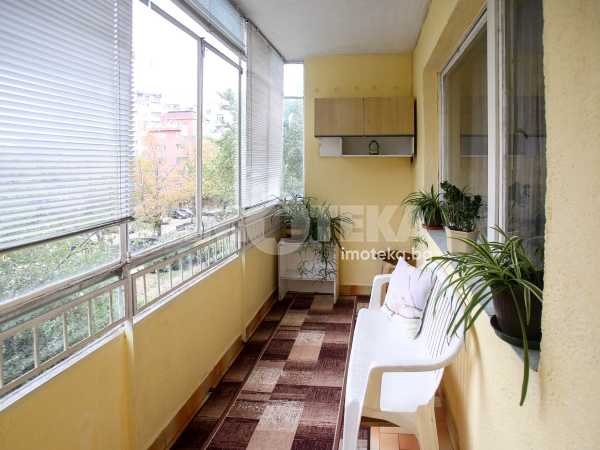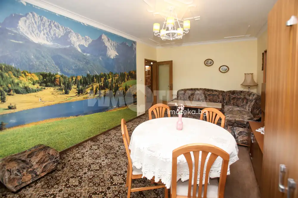 Уютен двустаен апартамент състоящ се: от просторна дневна, спалня, отделна кухня, баня с тоалетна, две тераси, едната остъклена тераса е приобщена към кухнята. Ретро обзаведен апартамент, напълно готов за живеене - с нов хладилник, готварска печка, пералня. Подходящ е за семейство с дете, търсещи комфорт и удобство в спокойна и удобна локация.
