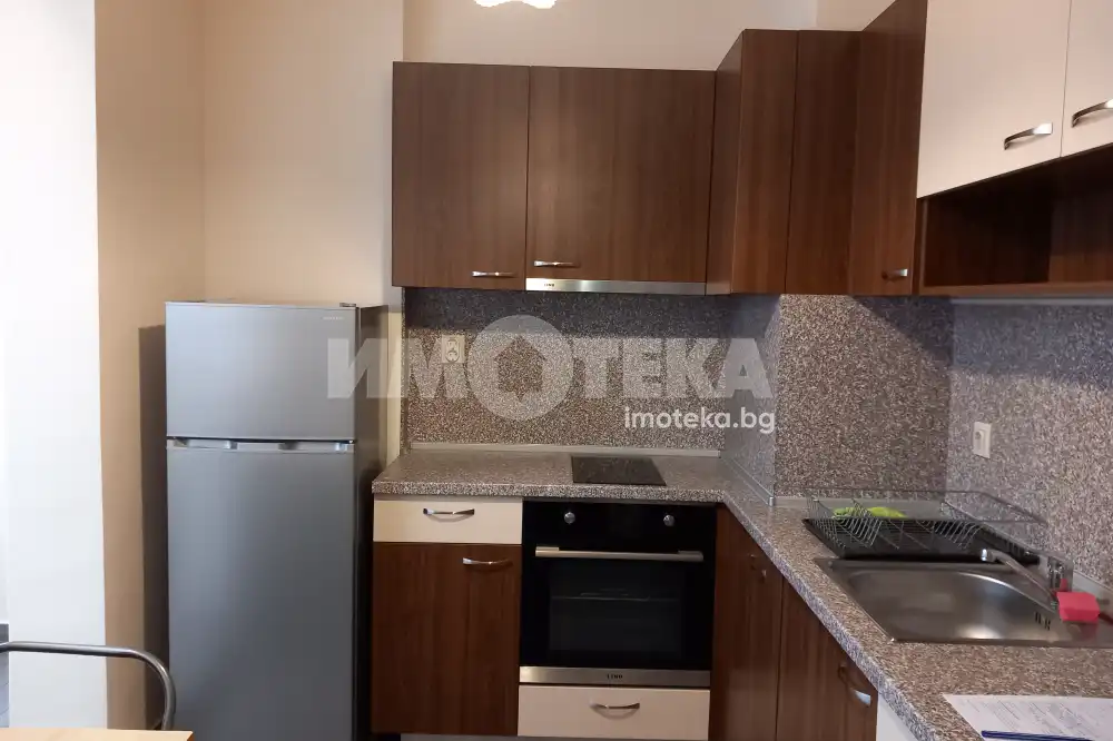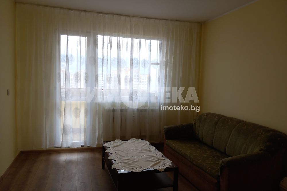 Двустаен апартамент след ремонт. Предлага се обзаведен, с кухненско обзавеждане/ котлони, фурна, абсорбатор, миялна машина и всичко е чисто ново. Състои се : входен коридор, кухня с усвоена тераса, стая, хол с тераса и сервизно помещение.