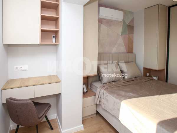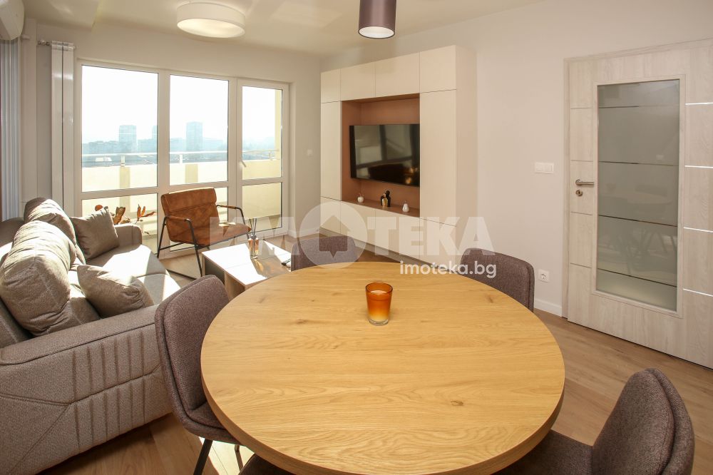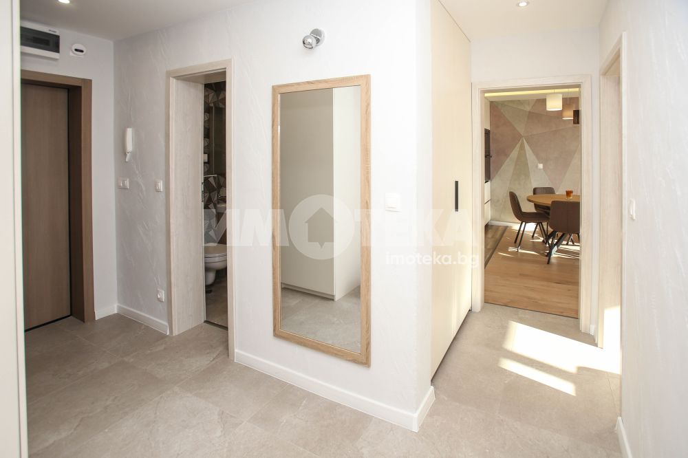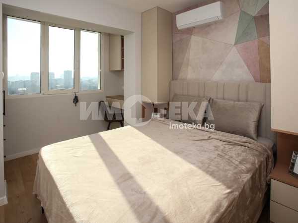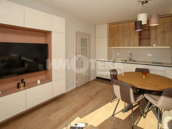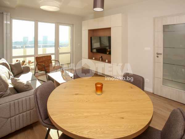 Тристаен апартамент преустроен от двустаен в Красна поляна 1. Имотът е напълно обзаведен след нов и качествен ремонт, неизползван. Две спални, голяма баня, хол, кухня и трапезаеия с излаз на тераса с хубави гледки към планината. Към имота има мазе с нова метална врата. Сградата е с два нови, бързи и безшумни асансьора. Околоблковото пространство е прекрасно, зелено с големи отстояния и много места за отдих и почивка и с вободни места за паркиране. Отоплява се с ТЕЦ има и климатици във всички стаи за охлаждане. Изцяло южно изложение.