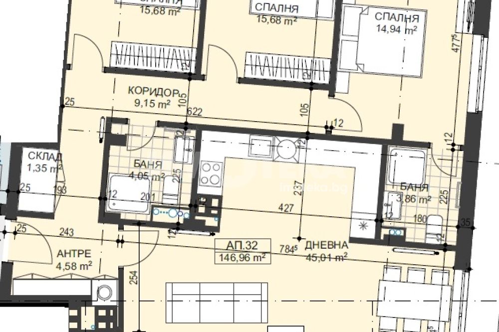 Просторен и светъл многостаен апартамент в кв. Редута с акт 16. Жилището се отличава с функционално разпределение и просторни помещения: дневна (45 кв.м.), три спални, два санитарни възела, две тераси и склад. Цена без ДДС