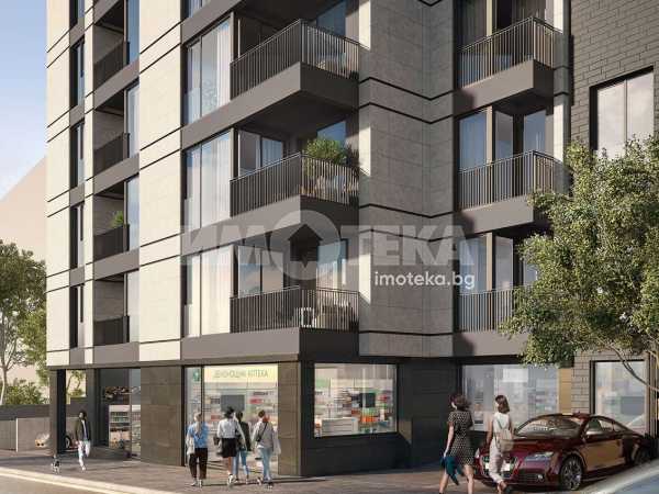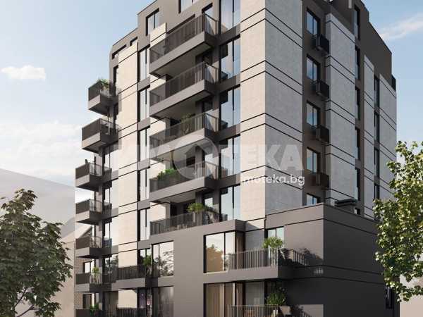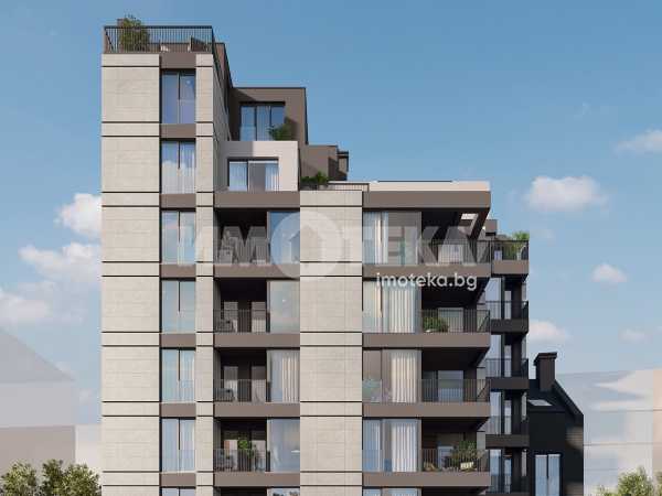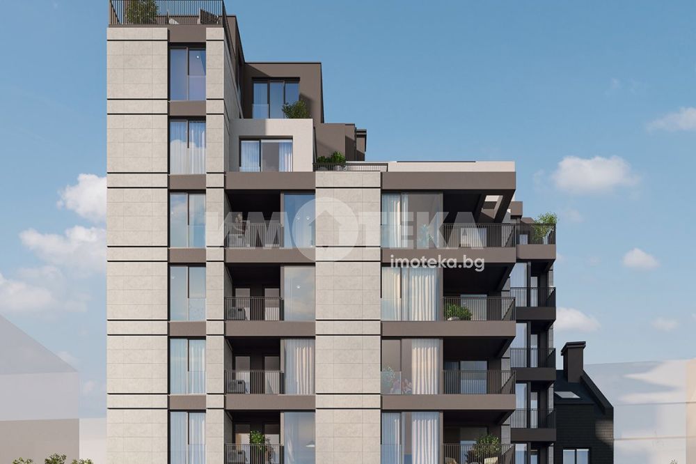 Качествено изпълнена сграда на метри от парк "Гео Милев", с окачена фасада и отличаващ се дизайн.