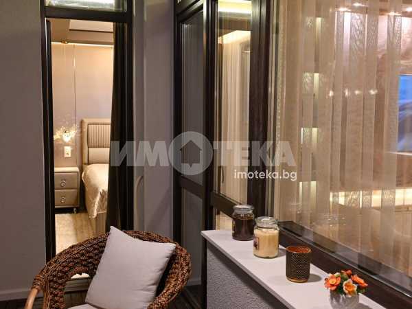 Състои се от просторна дневна с кухненски бокс , спалня, прекрасен балкон с достъп от дневната и спалнята, баня с тоалетна, вграден гардероб с пералня и сушилня в антрето.
