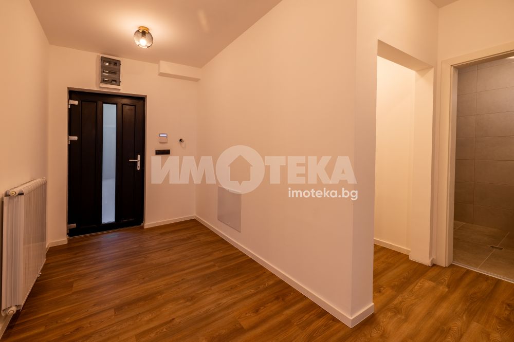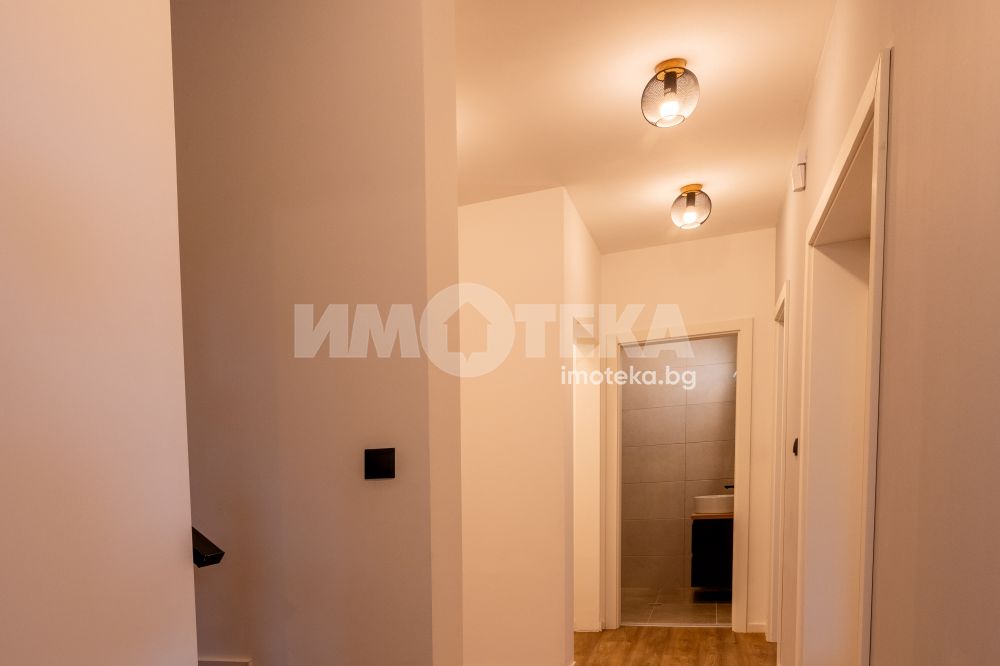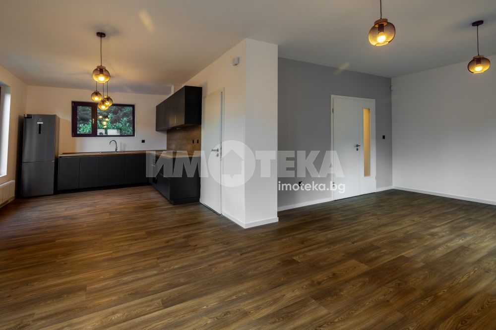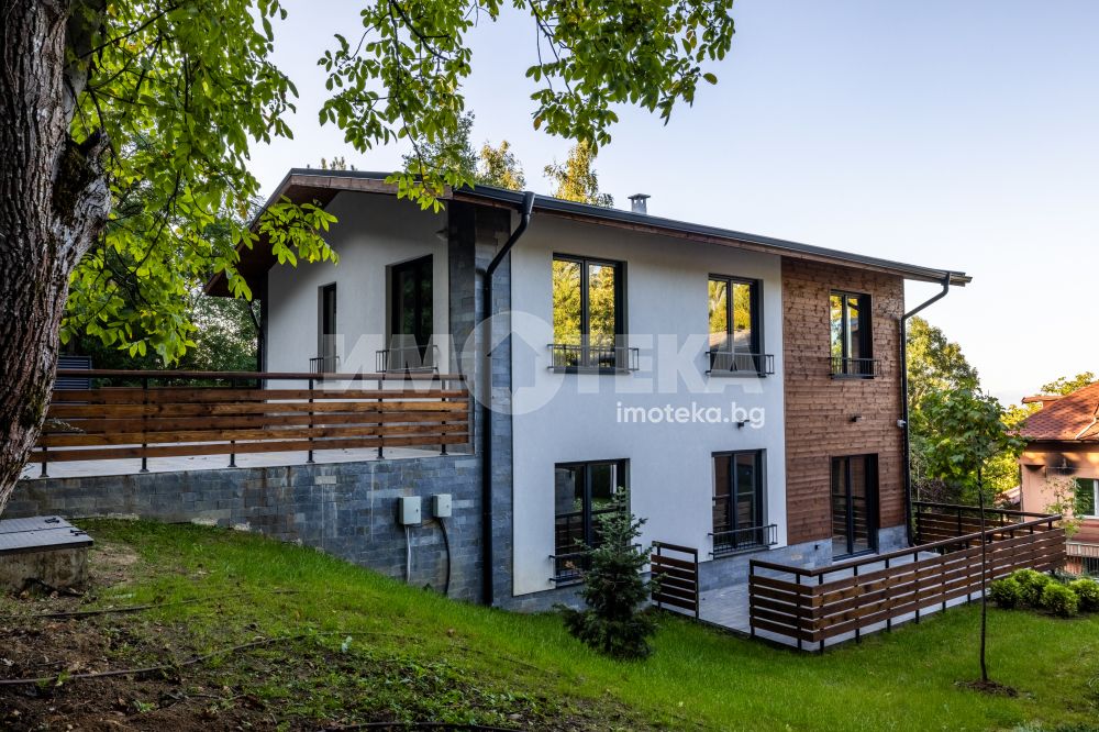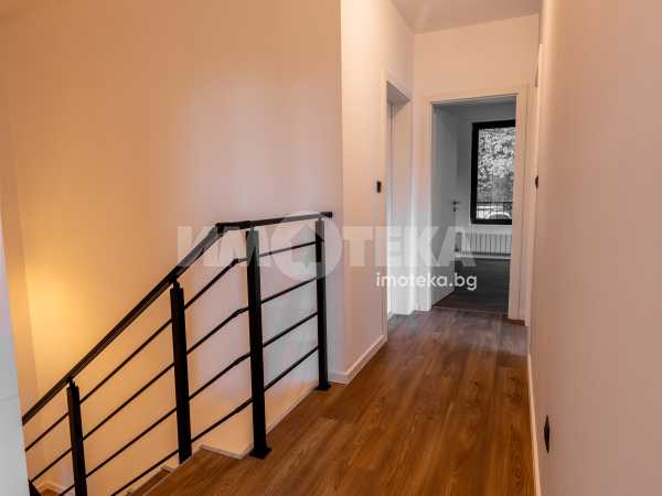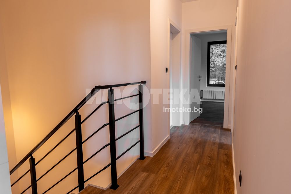 Самостоятелна нискоенергийна къща в общ парцел с други две къщи. Първо ниво предлага голяма дневна с кухненски бокс, една спалня, BWC, сервизно помещение и голяма веранда. На второ ниво има четири спални една от които е със собствена BWC. Пред къщата са ситуирани 3 паркоместа.