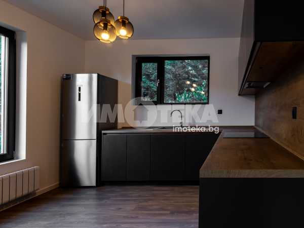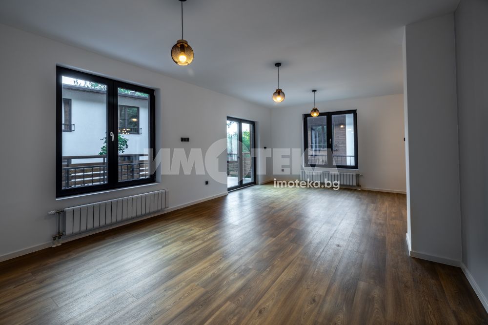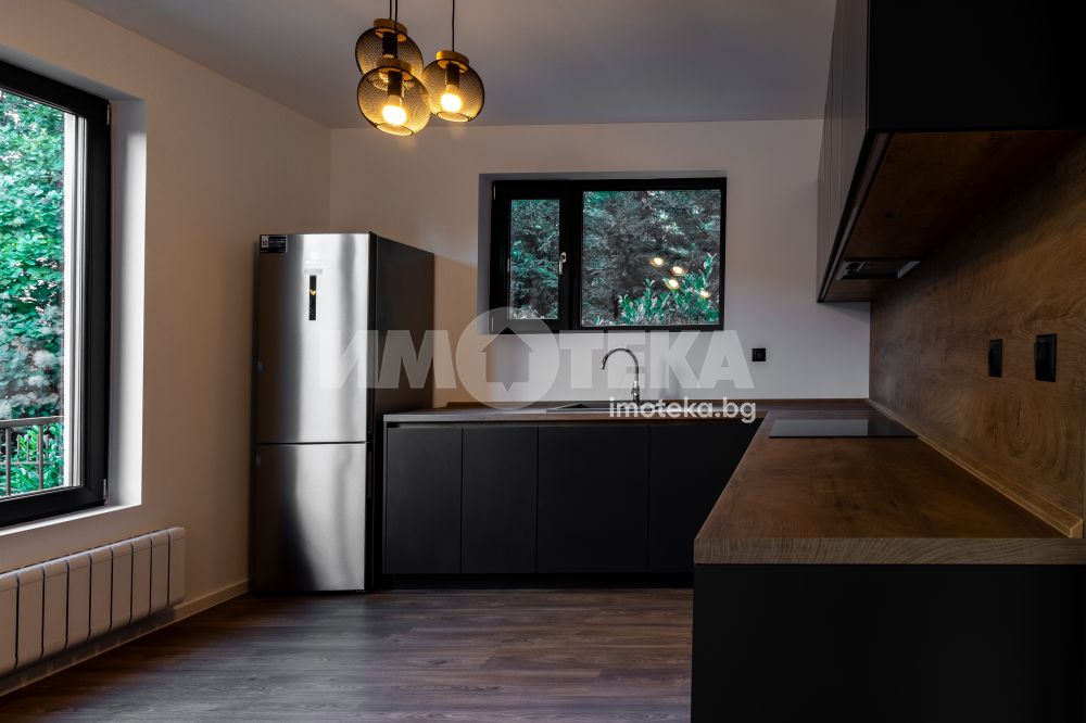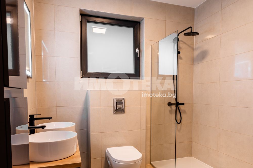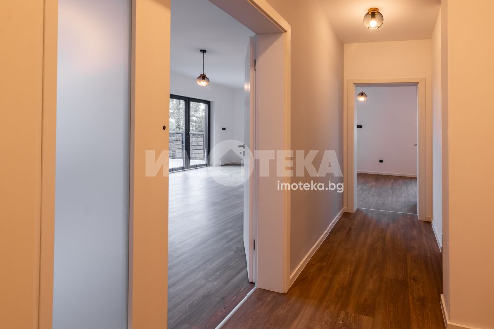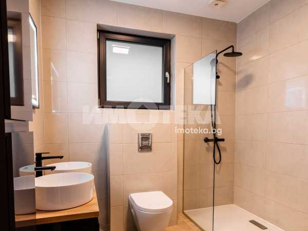 Самостоятелна нискоенергийна къща в общ парцел с други две къщи. Първо ниво предлага голяма дневна с кухненски бокс, една спалня, BWC, сервизно помещение и голяма веранда. На второ ниво има четири спални една от които е със собствена BWC. Пред къщата са ситуирани 3 паркоместа.