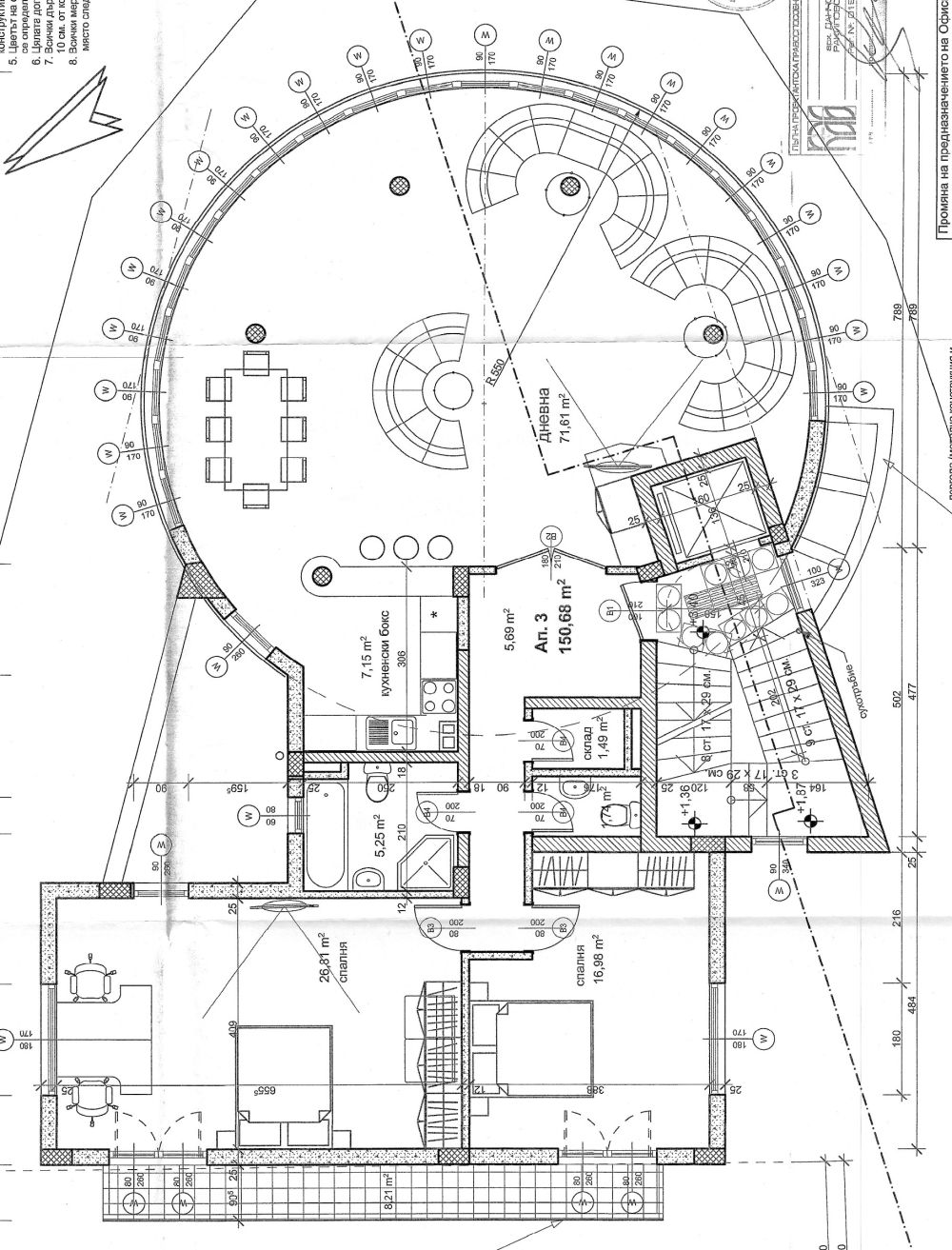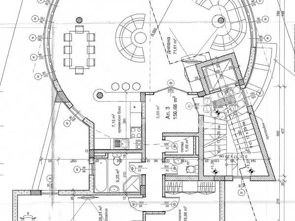 Сграда в кв. Симеоново на четири етажа. Кръгла архитектура с много светлина и панорамна гледка към Витоша и града.
