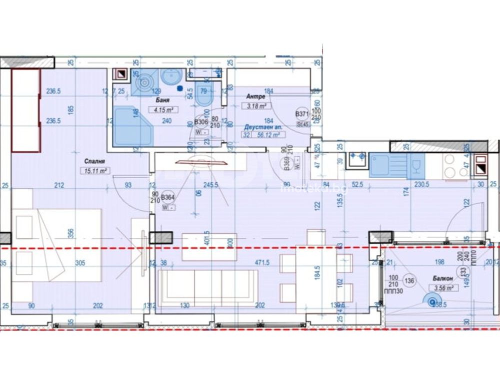 Разпределение: всекиднвна, спалня, баня с тоалетна, коридор и балкон. Южно изложение.