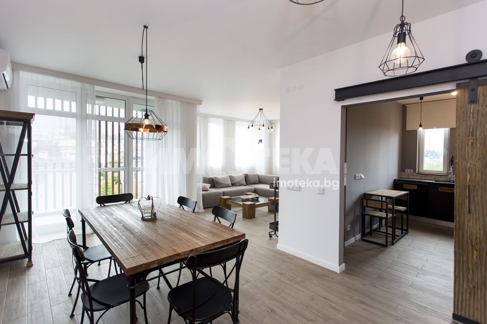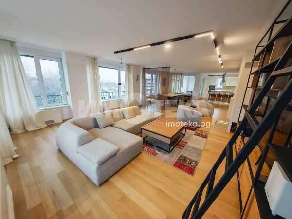Многостаен луксозен апартамент до Декатлон. Състои се от просторна всекидневна с трапезрия и кухненски бокс, три спални, антре, две бани с тоалетни, и две тераси.