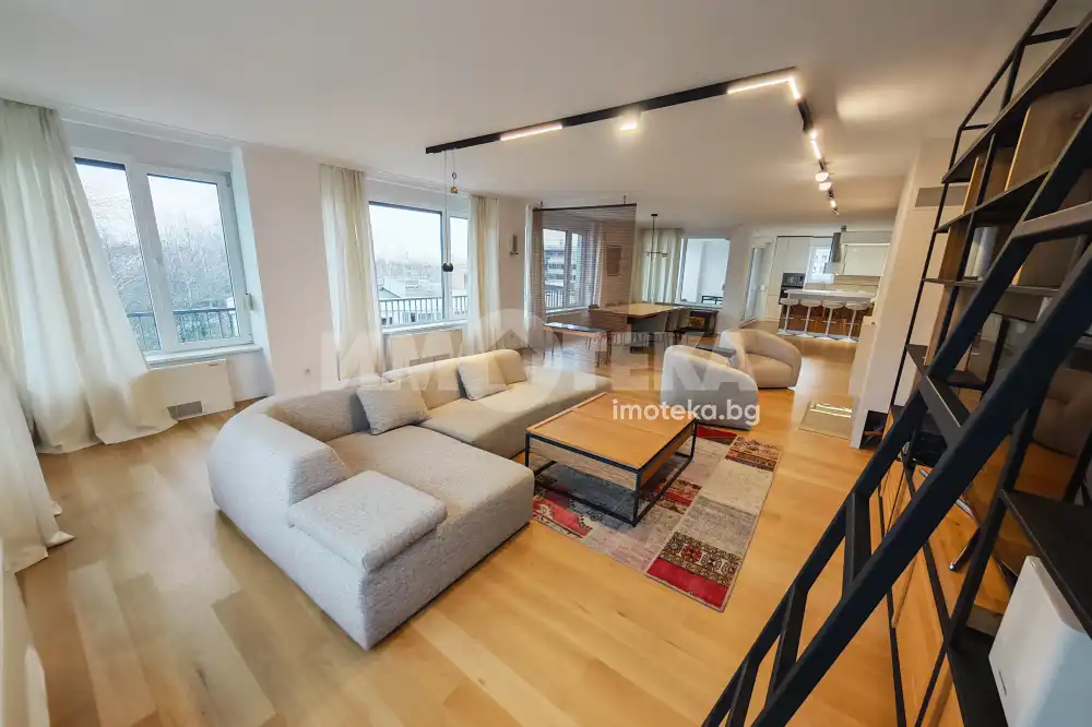 Многостаен луксозен апартамент в Резиденшъл Парк София. Състои се от просторен дневен тракт с кухненски бокс и трапезария, тераса, антре, три спални - две от които с бани с тоалетни и гардеробни, трета баня с тоалетна и мокро помещение. Апартаментът е разположен самостоятелно на цял етаж.