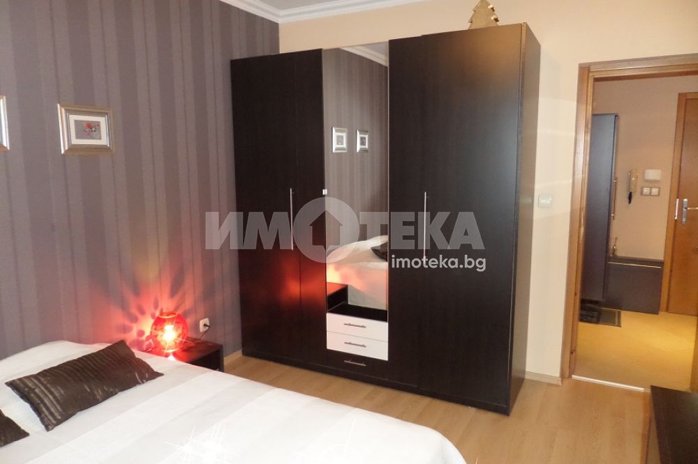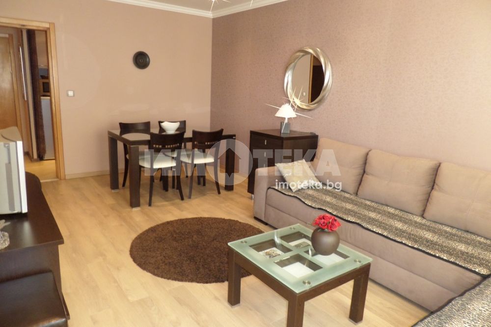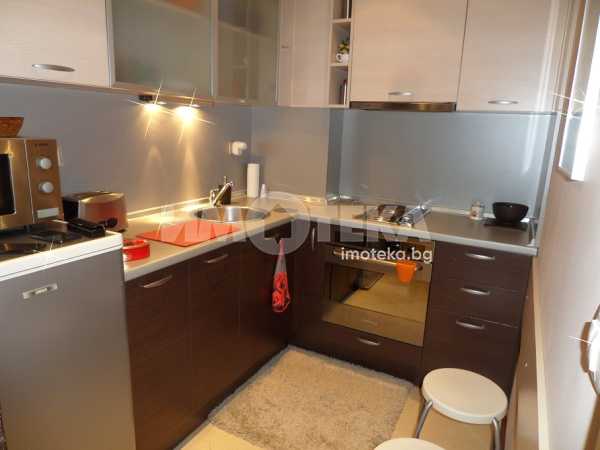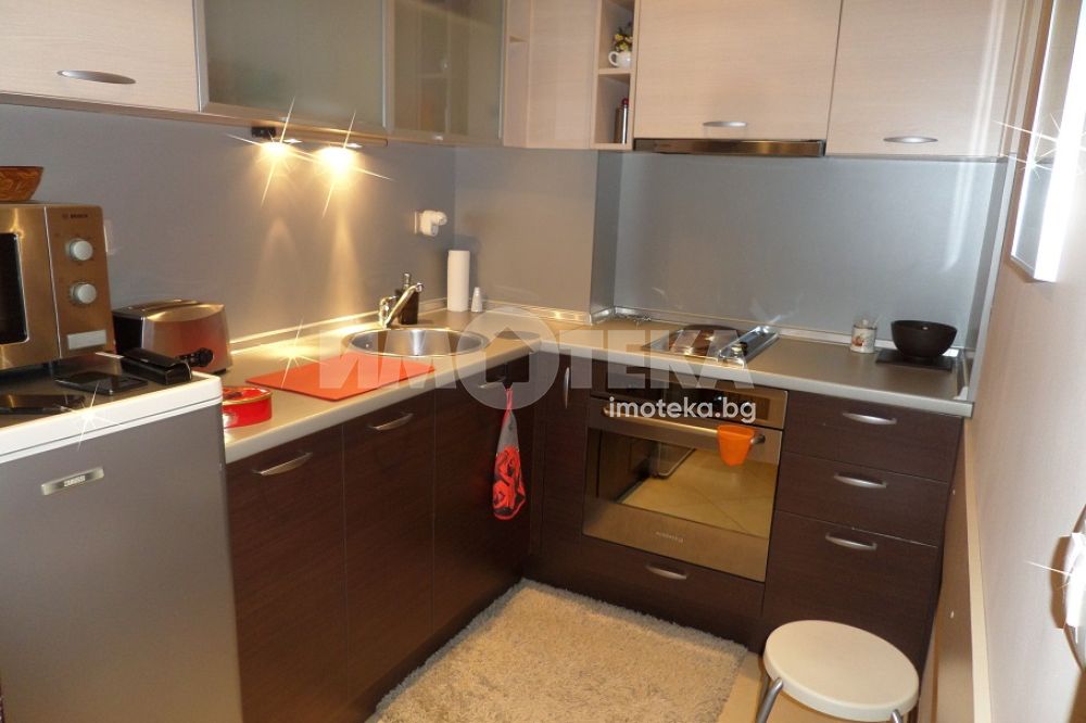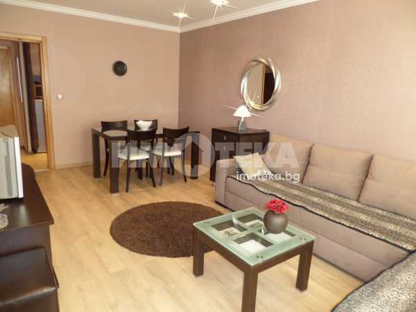 СТИЛНО ОБЗАВЕДЕН двустаен апартамент, в нова представителна сграда. Състои се от дневна с трапезария, отделен кухненски бокс, антре, спалня, тераса, на която се излиза от дневната и спалнята, баня с WC с душ-кабина. Отоплението е на ТЕЦ с много ниски разходи за отопление. ЕЛЕКТРОУРЕДИ - климтик в дневната, печка с фурна, абсорбатор, хладилник, пералня, микровълнова фурна, кафеварка, телевизор с интернет телевизия.