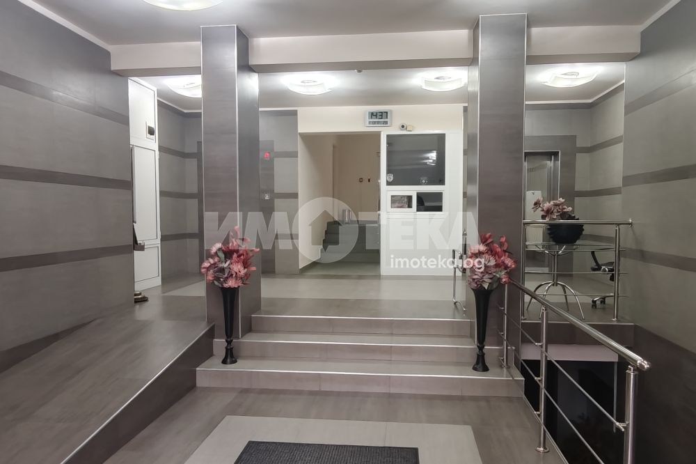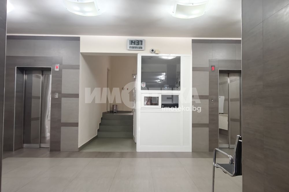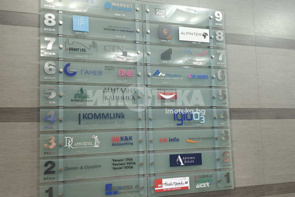 Офисът се намира на втори етаж в представителна и отлично поддържана сграда с контрол на достъпа, видеонаблюдение и 24/7 охрана. Входното фоайе е модерно завършено с висококачествени настилки, декоративни стенни панели и елегантно осветление. Сградата разполага с асансьори, просторни общи части и автоматична плъзгаща се входна врата, осигуряваща удобство и престиж още при посрещането на клиенти и партньори.