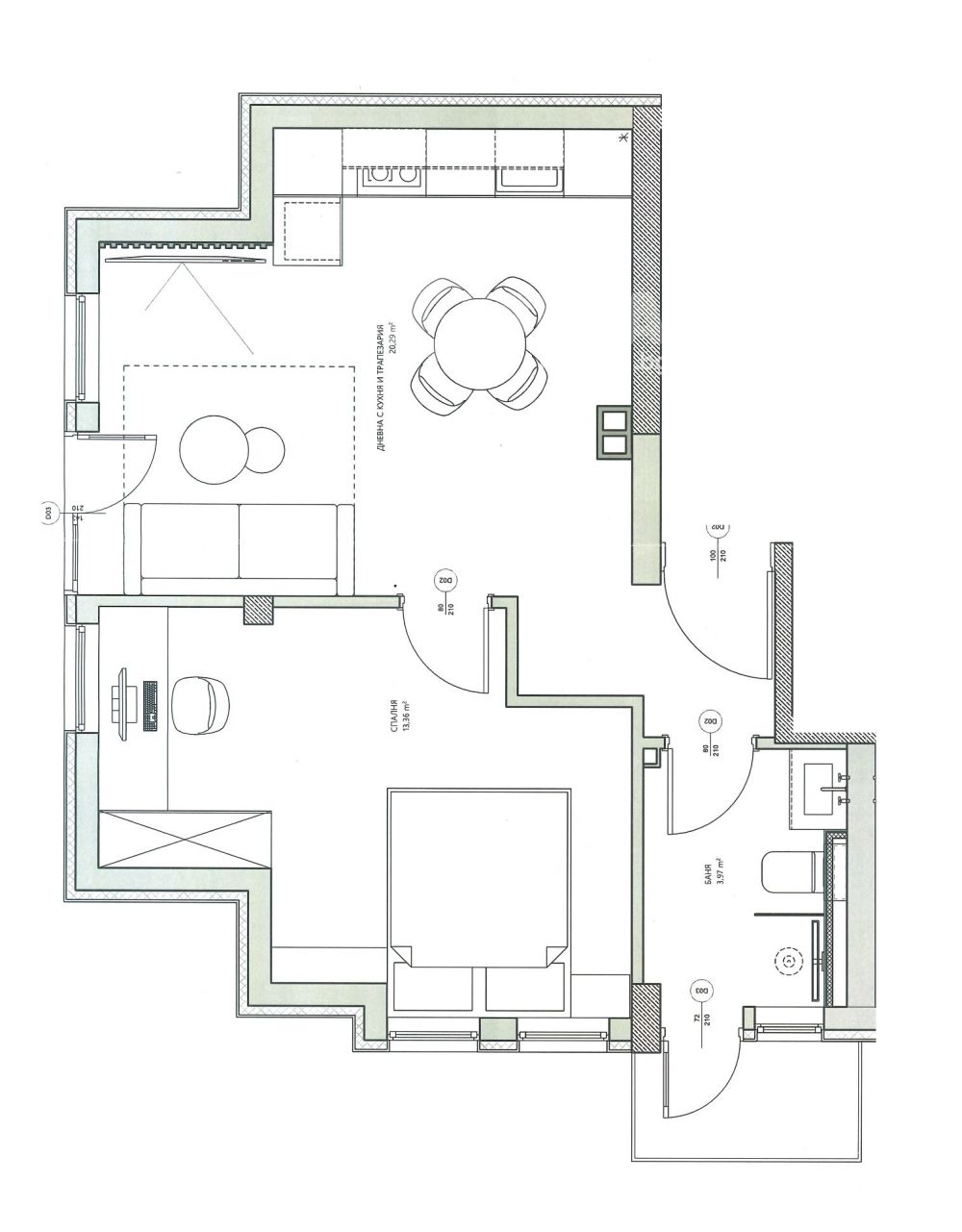 Двустаен апартамент състоящ се от: антре, дневна с кухненски бокс, спралня, баня с тоалетна и тераса. Към жилището има прилежащо мазе.