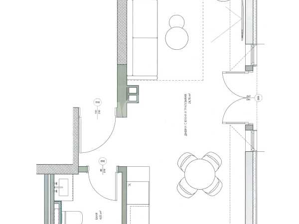 Двустайно жилище състоящо се от: антре, дневна с кухненски бокс, спралня, баня с тоалетна и тераса. Към жилището има прилежащо мазе.