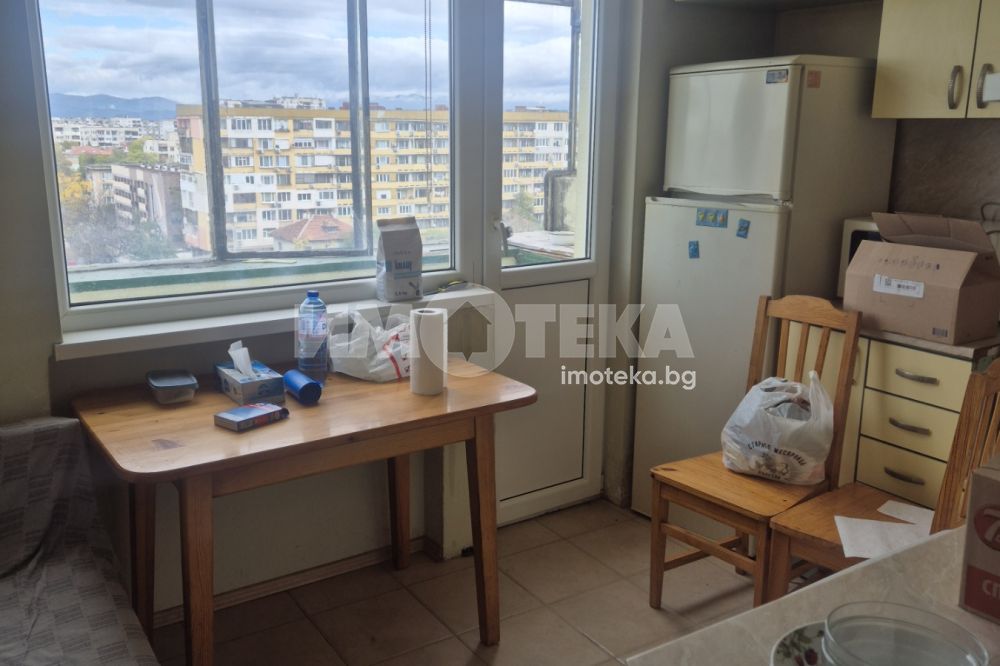 Просторен двустаен апартамент, състои се от: коридор, хол, кухня, спалня, два балкона, баня с тоалетна. Площ от 68 кв.м. с възможност да се преустрой в съвременен тристаен апартамент, светъл с хубави гледки. В добро състояние с прилежащо мазе от 3.20 кв.м. Изложение северозапад/югоизток. Отопление на ТОК. Имота се нуждае от частичен ремонт.