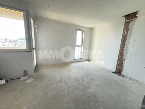 Състои се от : входно антре , две спални , две санитарни помещения, хол с кухненски бокс и балкон на Юг.