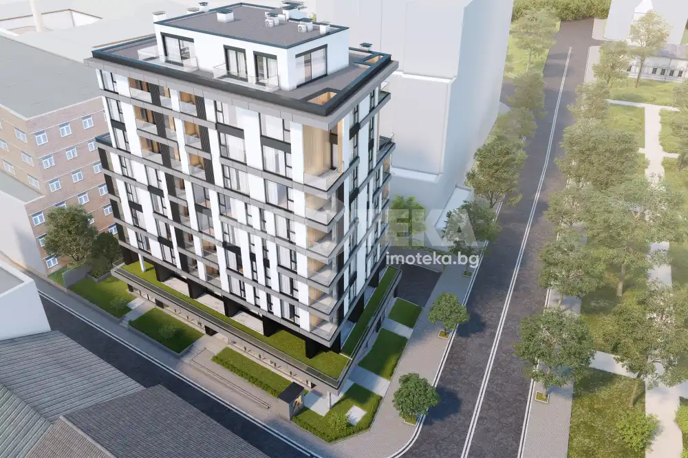 Десет етажна сграда от доказал се строител. Разполага с офиси, магазини, жилищна площ и два подземни етажа с паркоместа и складови площи.
