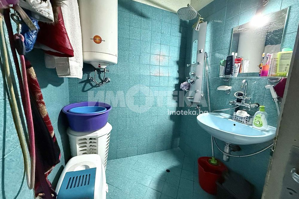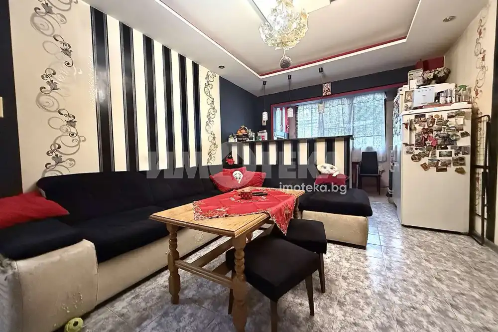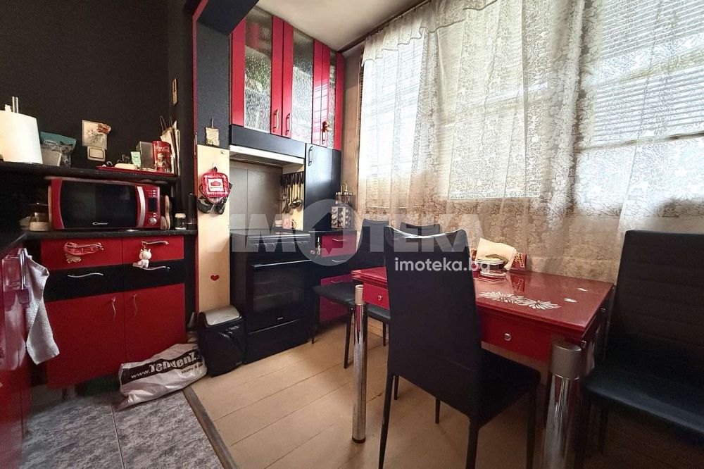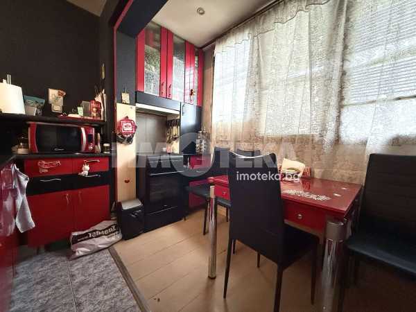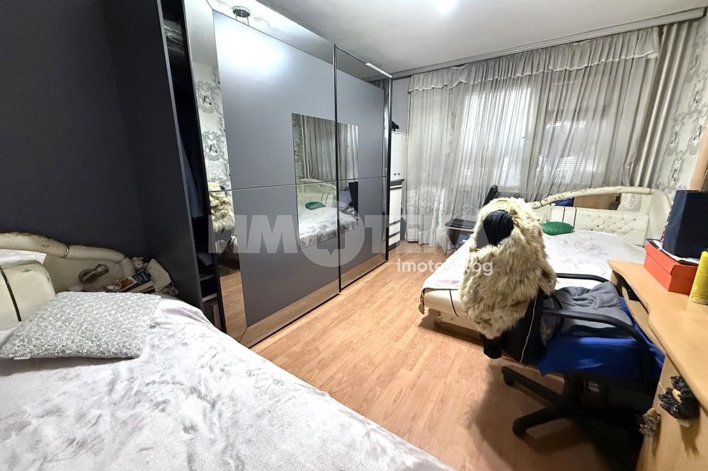 Тристаен маломерен апартамент , преустроен от двустаен със следното разпределение : хол с кухненски бокс с усвоена тераса , две спални , едната от които с усвоена тераса а към другата има остъклен балкон , Баня с тоалетна , килер . Като цяло жилището се нуждае от съвременен ремонт.