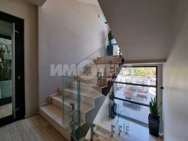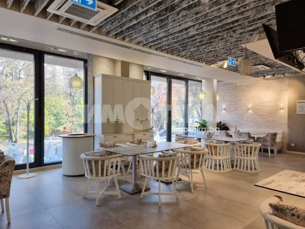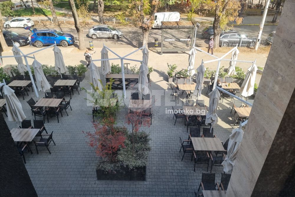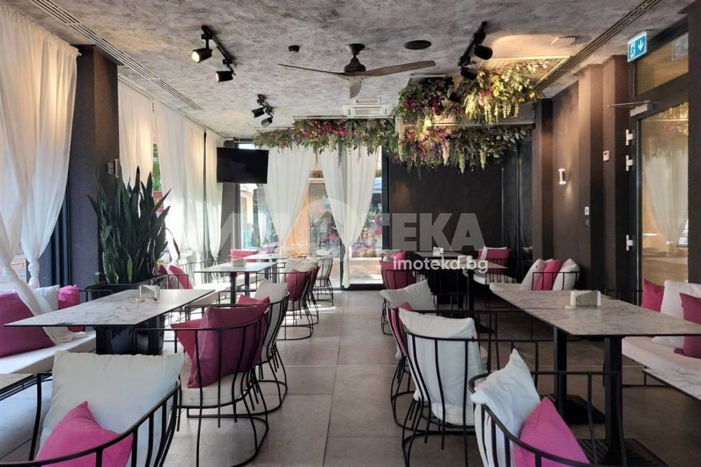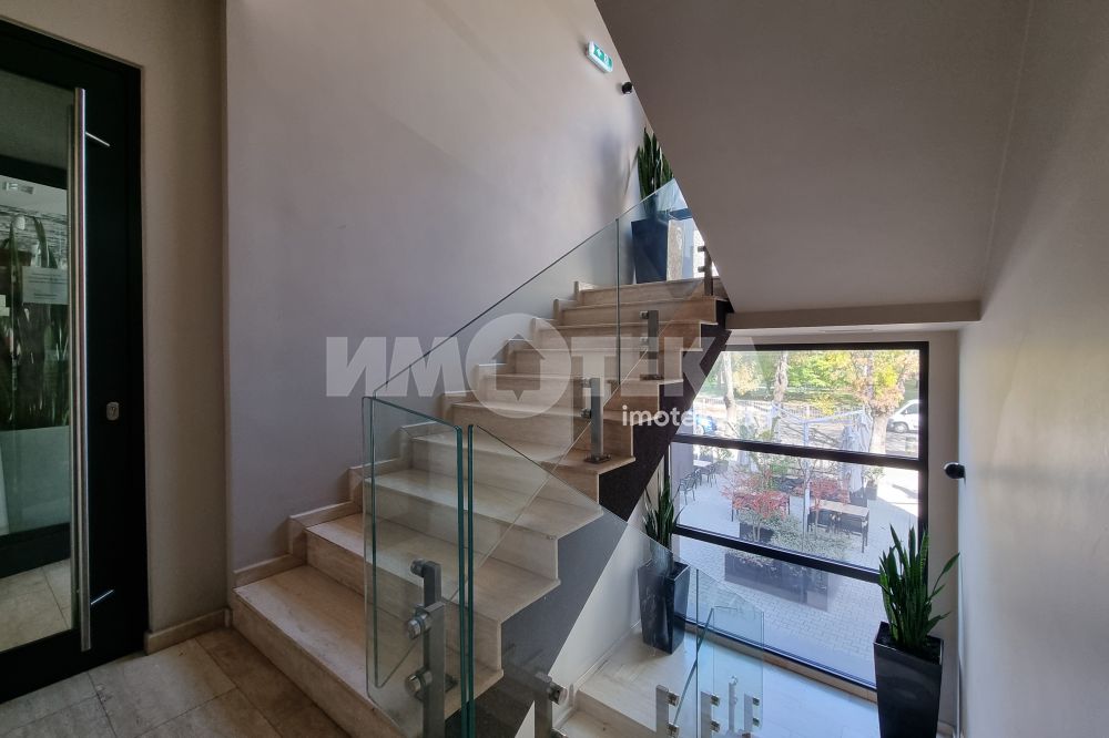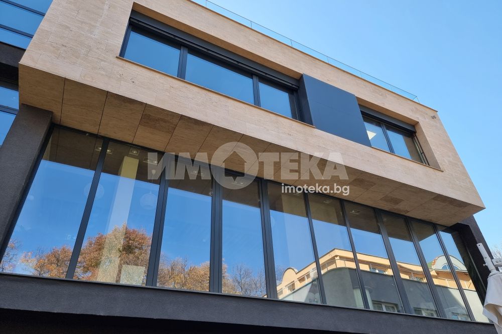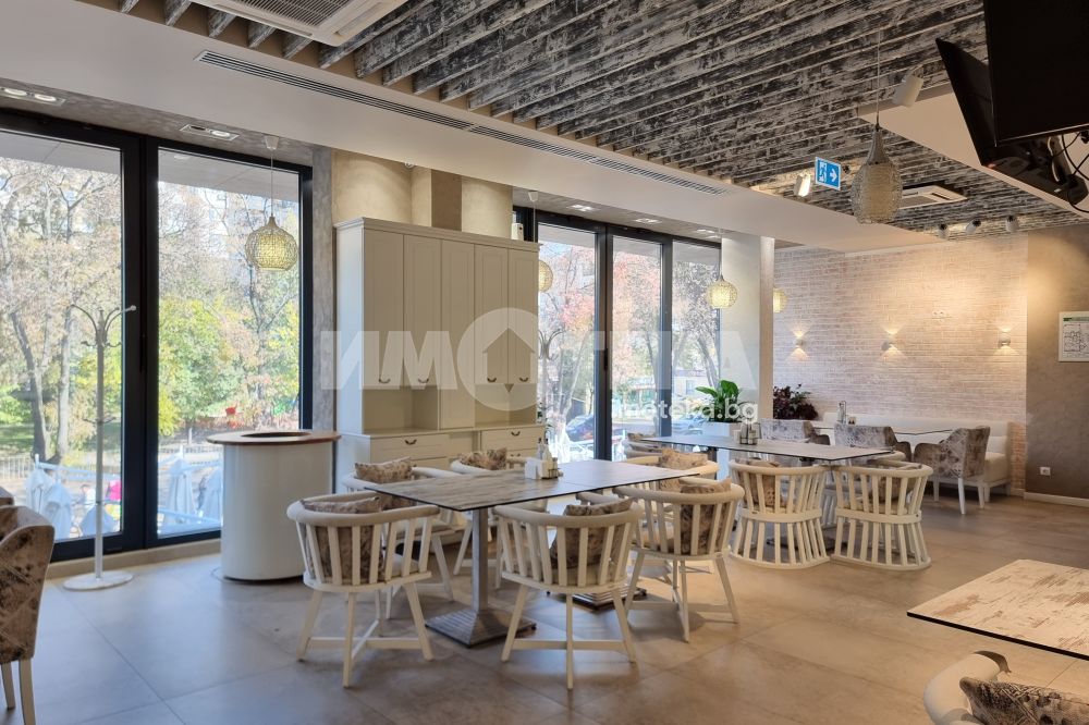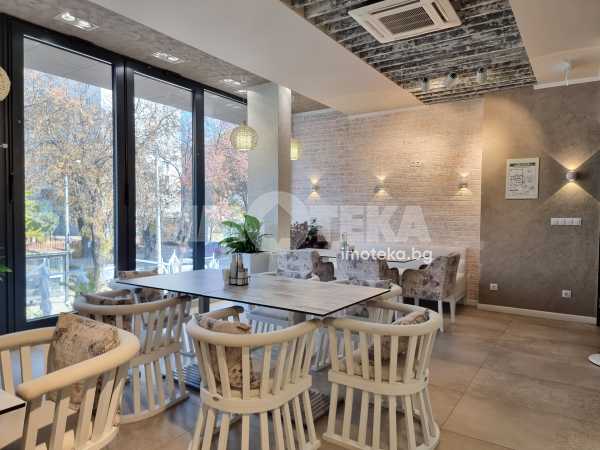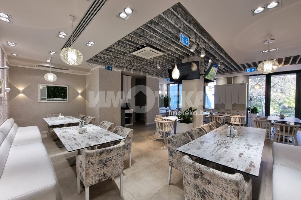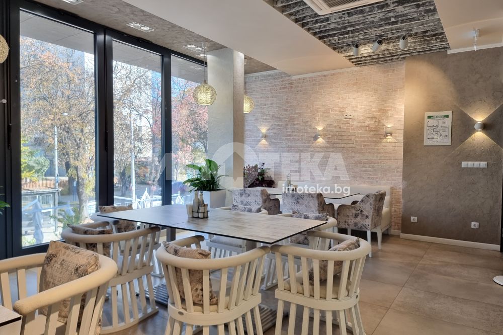 Изключително луксозна, нова бизнес сграда на четири етажа с РЗП 1238 кв.м. Еталон на лукса и професионализма в строителството! Изпълнение с висококачествени материали и с прецизност до най-малкия детайл. Архитектурата е модерна смесица от изчистени линии, комбинация от различни материали и много светлина. Разпределение: административна част - офиси на 2 нива с хубави, панорамни тераси, VIP зала, ресторант на три нива, детски клуб за игри, професионална кухня, хладилни помещения, технически помещения, складове, санитарни помещения и др. Височина на помещенията 340см. Голяма, лятна градина, която вдига капацитета на заведението с още 140 седящи места през топлите месеци.