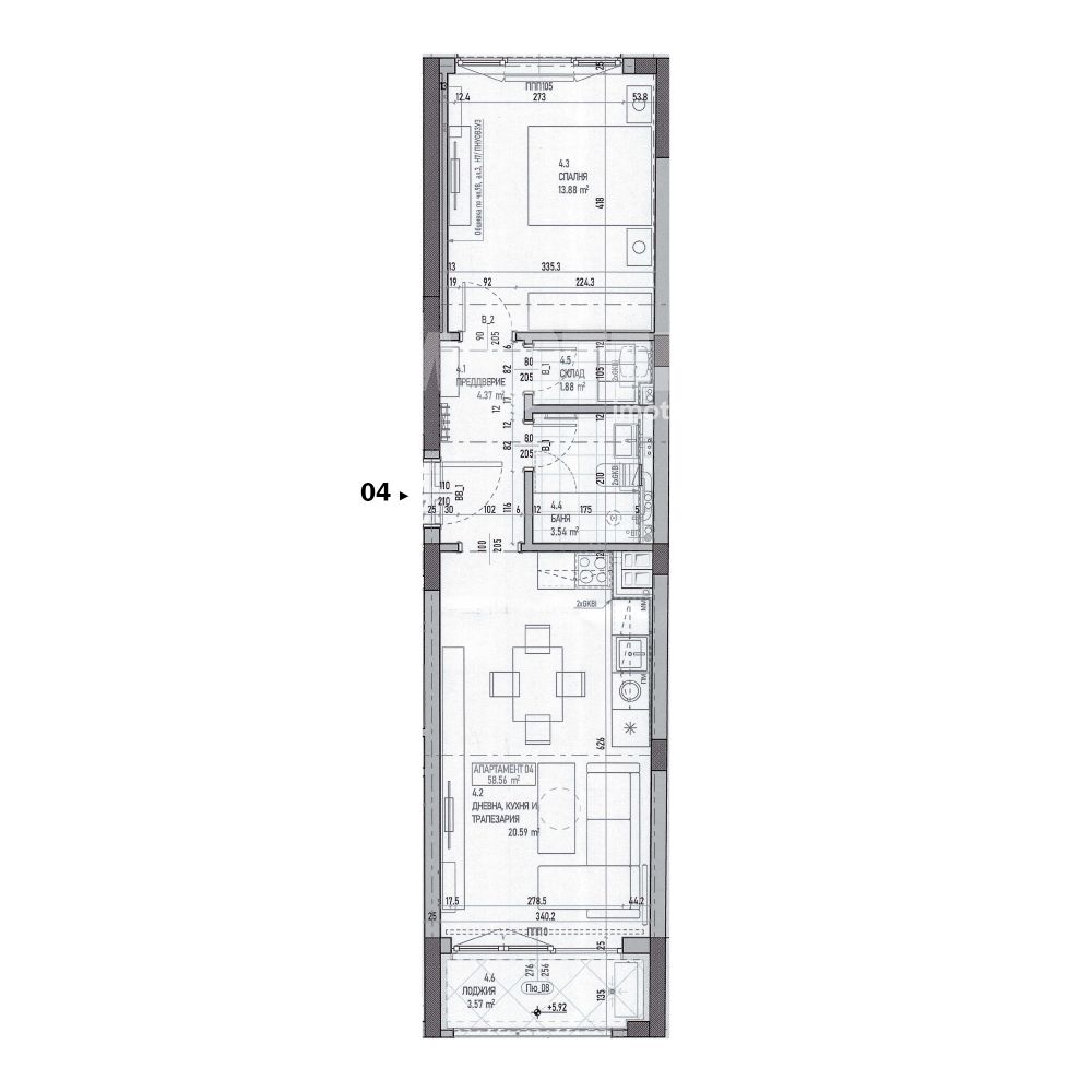 Дневна с бокс, тераса, спалня, баня с wc, килер.
