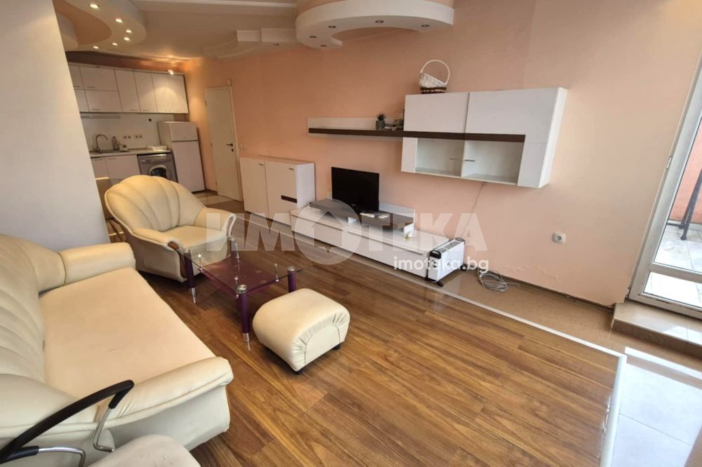 Предлагаме Ви двустаен обзаведен апартамент в центъра на града. Състои се от входно антре, просторен хол с трапезария и кухненски бокс, спалня ( липсва легло ще се набави от наемодателя при наемане на апартамента), баня с тоалетна, тераса.
