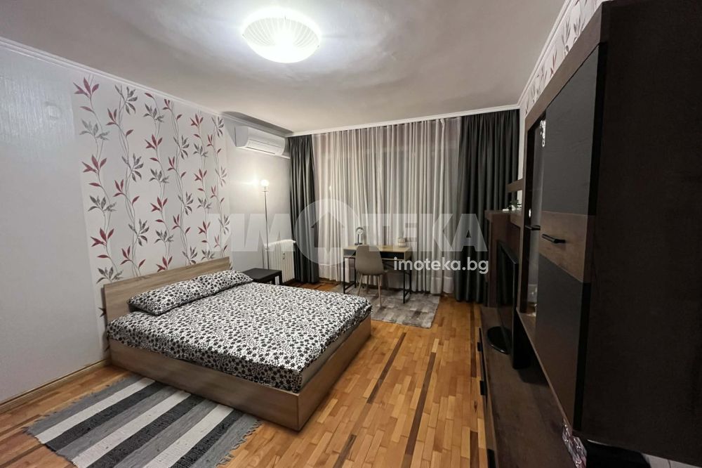 Двустаен апартамент в непосредствена близост до НДК, напълно обзаведен с посуда в кухната. Състои се от две помещения, дневна с кухненска част, и хол със спалня. Отоплаението е на ТЕЦ и климатик.
