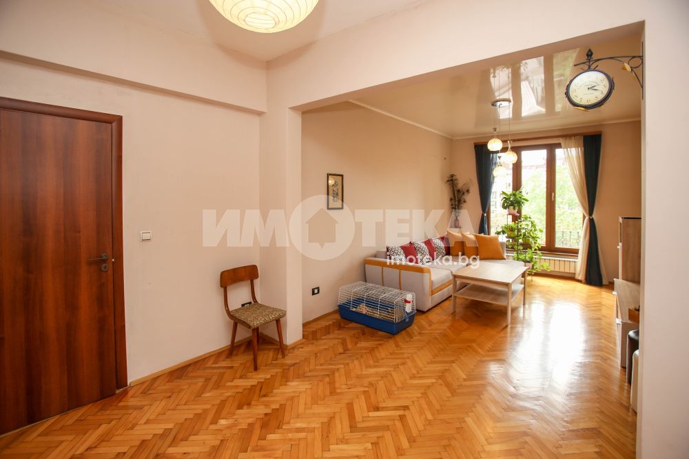 Обзаведен двустаен апартамент с отделна кухня, в тухлена сграда в центъра на София - срещу Втора градска болница. Апартаментът е вътрешен, изцяло покрит и към него има прилежащо мазе 5кв.м и таванско помещение 6 кв.м.