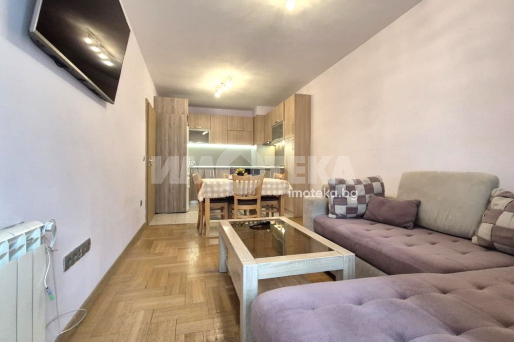 Предлагаме Ви двустаен обзаведен апаратмент с две паркоместа към апартамента. Находящ се в центъра на града. Състои се от входно антре, всекидневна с трапезария и кухненски бокс, спалня, баня с тоалетна, остъклен балкон.
