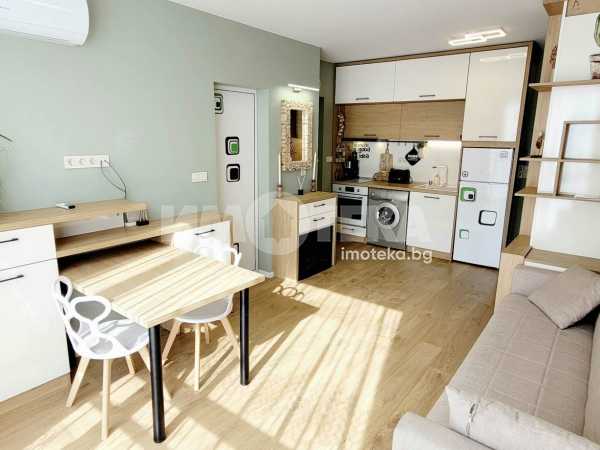 Апартаментът се състои от: светла дневна зона с удобен кът за отдих и кухня; уютна спалня с място за съхранение; баня с тоалетна; Интериорът е стилно и изчистено обзаведен, съчетаващ уют, функционалност и модерна визия. Всичко необходимо за комфортен живот е осигурено – готов за нанасяне веднага. Предвидено отопление с климатици, интернет и телевизия.