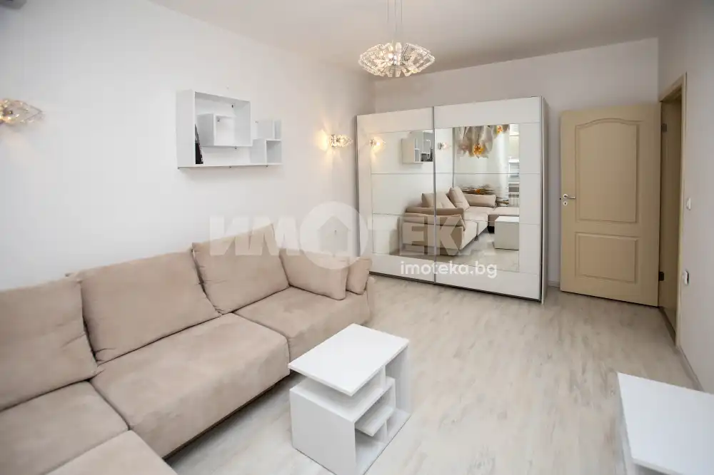 Имотът се намира в поддържана сграда с много добри общи части и контролиран достъп. Апартаментът се състои от входно антре, просторен хол, уютна спалня, отделна кухня, баня с тоалетна и балкон.
