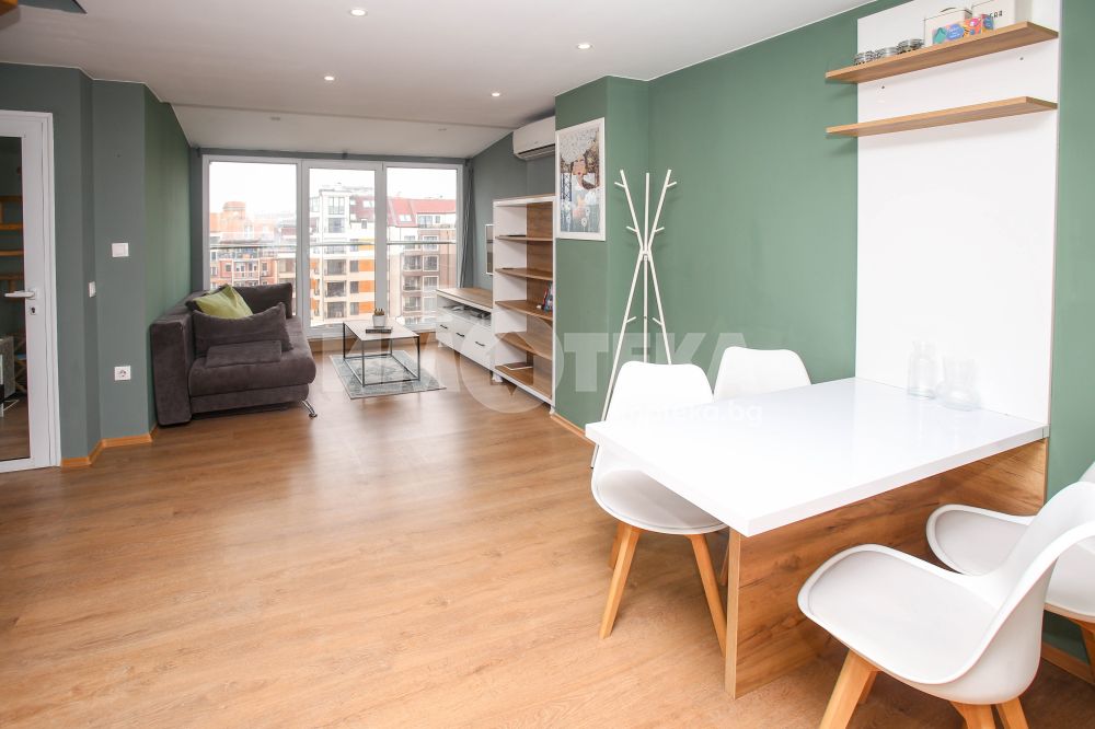 Апартаментът е след освежителен ремонт, напълно обзаведен с внимание към детайла и разполага с висок клас техника – всички кухненски уреди са Miele, а пералнята и сушилнята - Bosch.