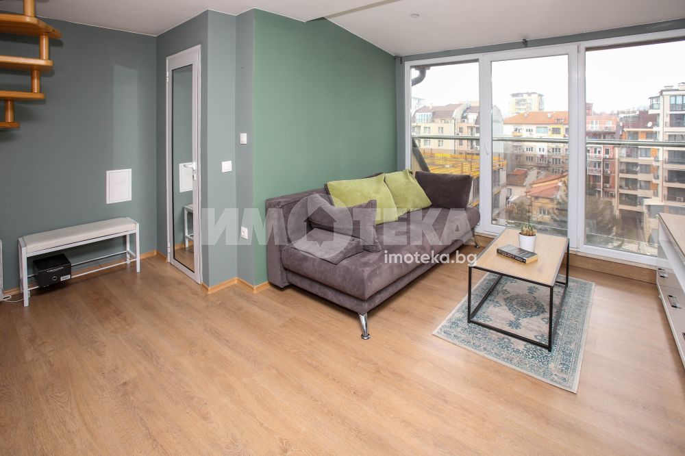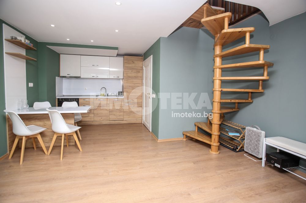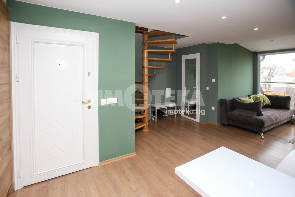 Предлагаме Ви добре поддържан и елегантно обзаведен двустаен апартамент - тип мезонет на ул. Царибродска, на 50м. от метростанция "Константин Величков".