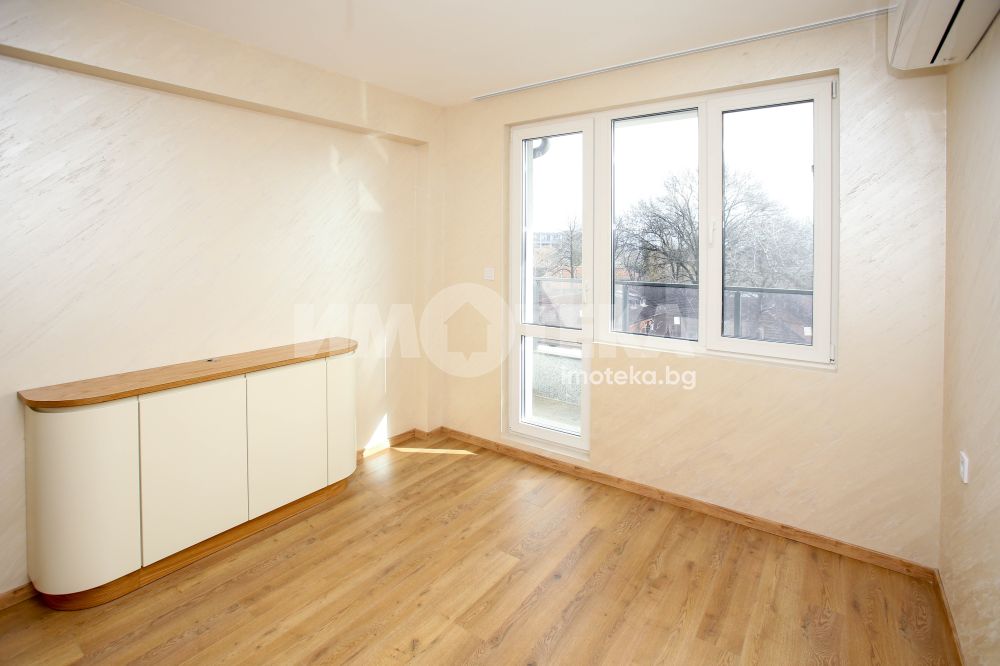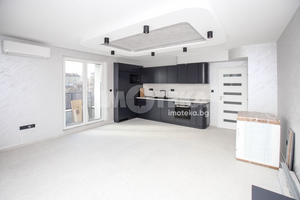 Двустаен просторен апартамент в широкия център на града. Намира се на трети етаж в пететажна сграда, ново строителство. Сградата е с Акт 16 от началото на 2026 година. Апартаментът е много светъл, с южно изложение. Стените са с декоративна мазилка.