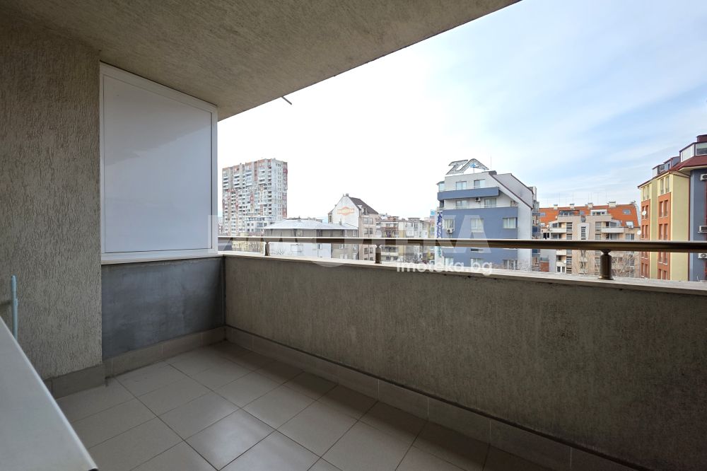 Имотът се състои от светъл хол с кухненски бокс, спалня, баня с тоалетна и просторен балкон с излаз както от хола, така и от спалнята. Апартаментът е готов за нанасяне, поддържан и функционално разпределен.