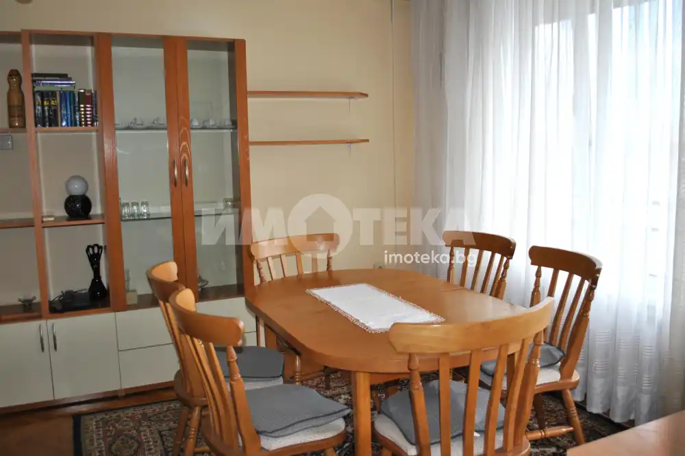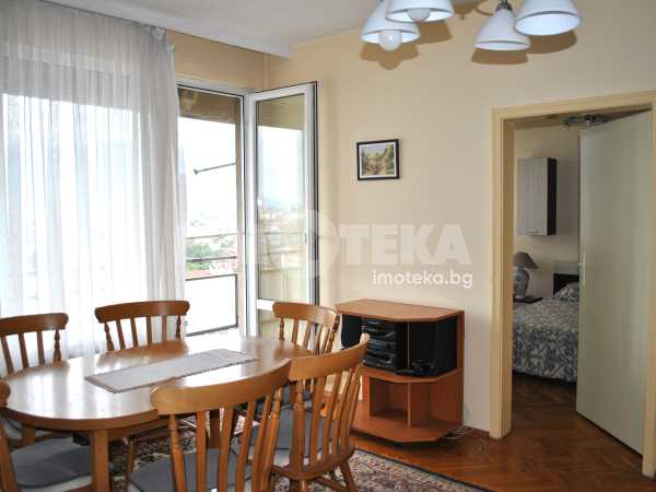 Отличен двустаен апартамент на много комуникативно място. Жилището се състои от входно антре, хол, преходна спалня, кухня, баня с тоалетна и балкон пред трите помещения с южно изложение и красива гледка. Апаратментът е в много добро състояние и се предлага напълно обзаведен. Отоплението е на ТЕЦ. Има монтирани климатик и СОТ. Домашни любимци не са позволени