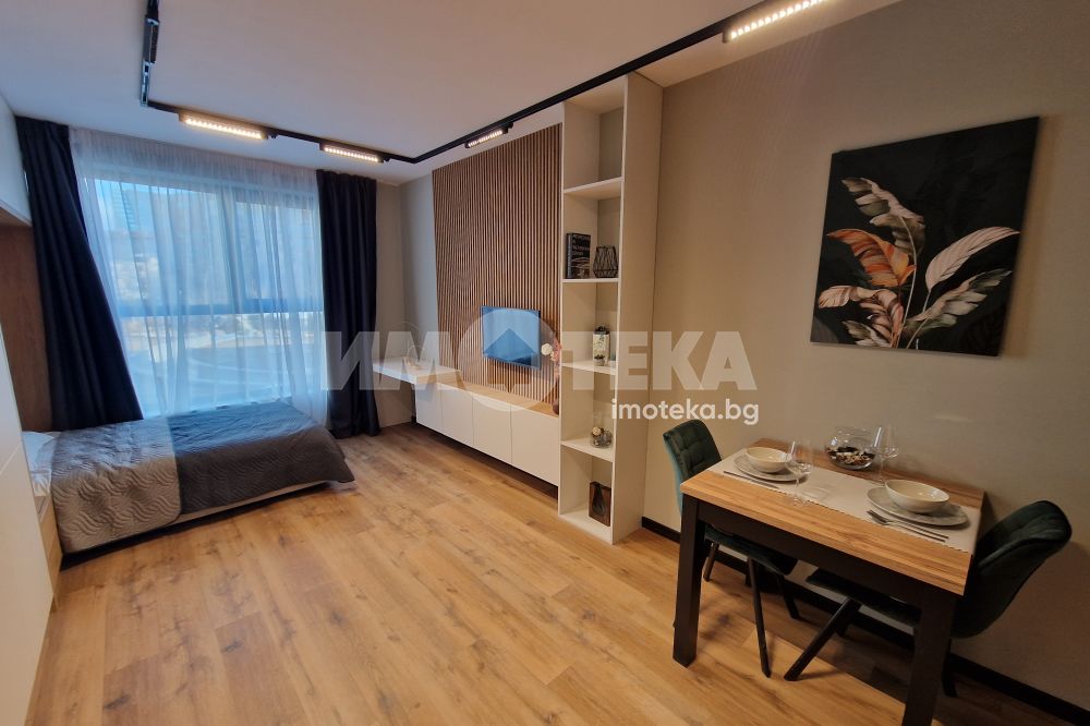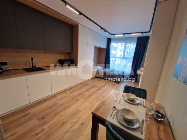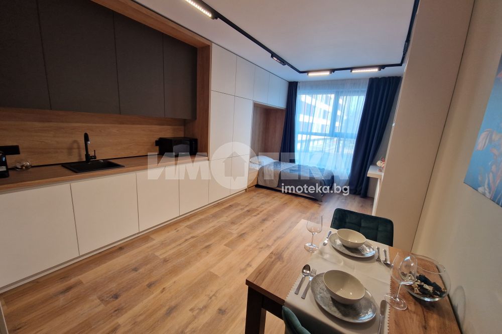 Без Комисионна. Напълно обзаведен еднопространствен апартамент състоящ се от дневна с кухненски бокс, спален кът, баня с тоалетна.