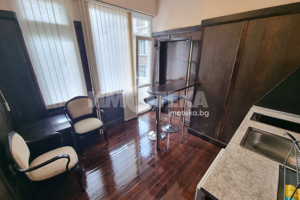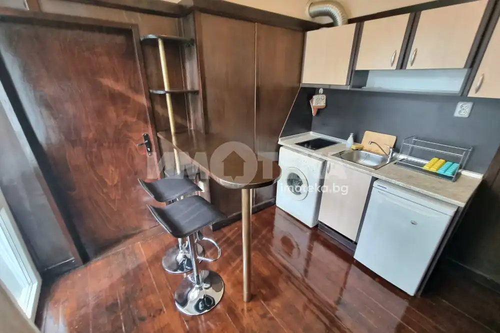 Обзаведена гарсониера в идеален център. Състои се от кухня, спалня, антре, баня с тоалетна и тераса.