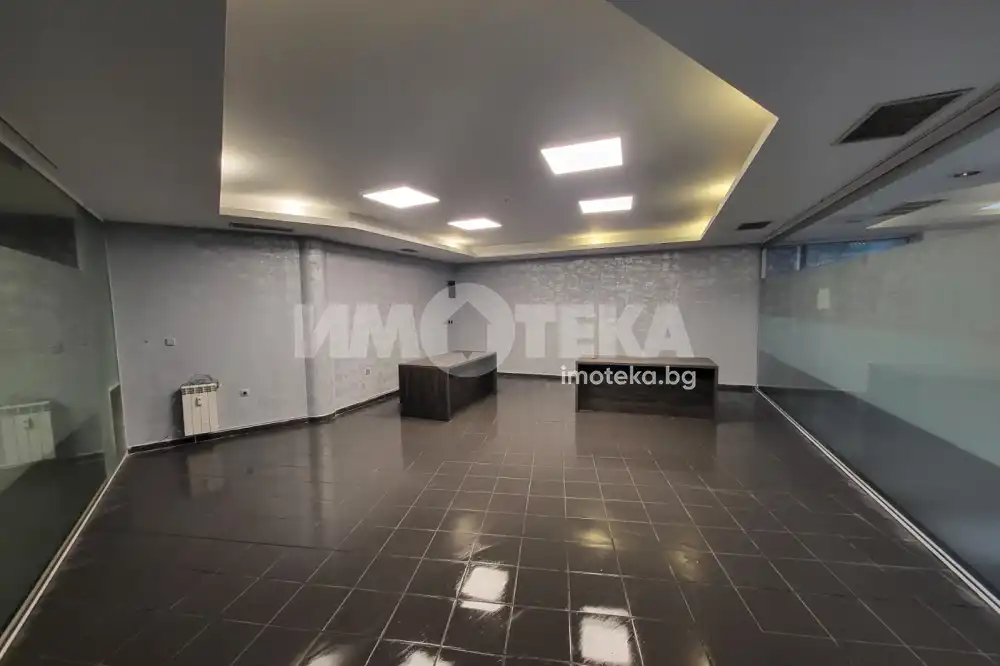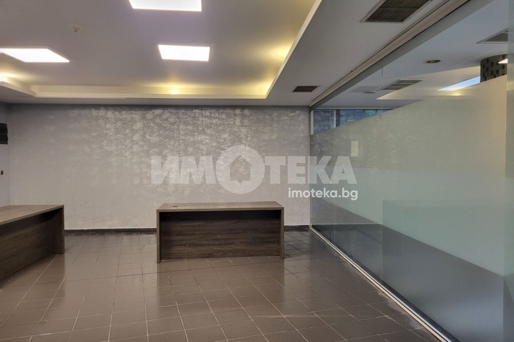Помещение със статут на магазин, използвано като офис. 64,45 кв.м..Намира се във фоайето на бизнес сграда. Контролиран достъп. Няма витрина към улица. Подходящо за адвокатска кантора, офис.