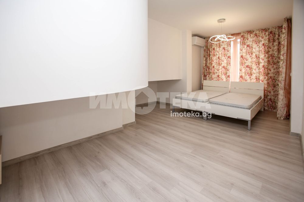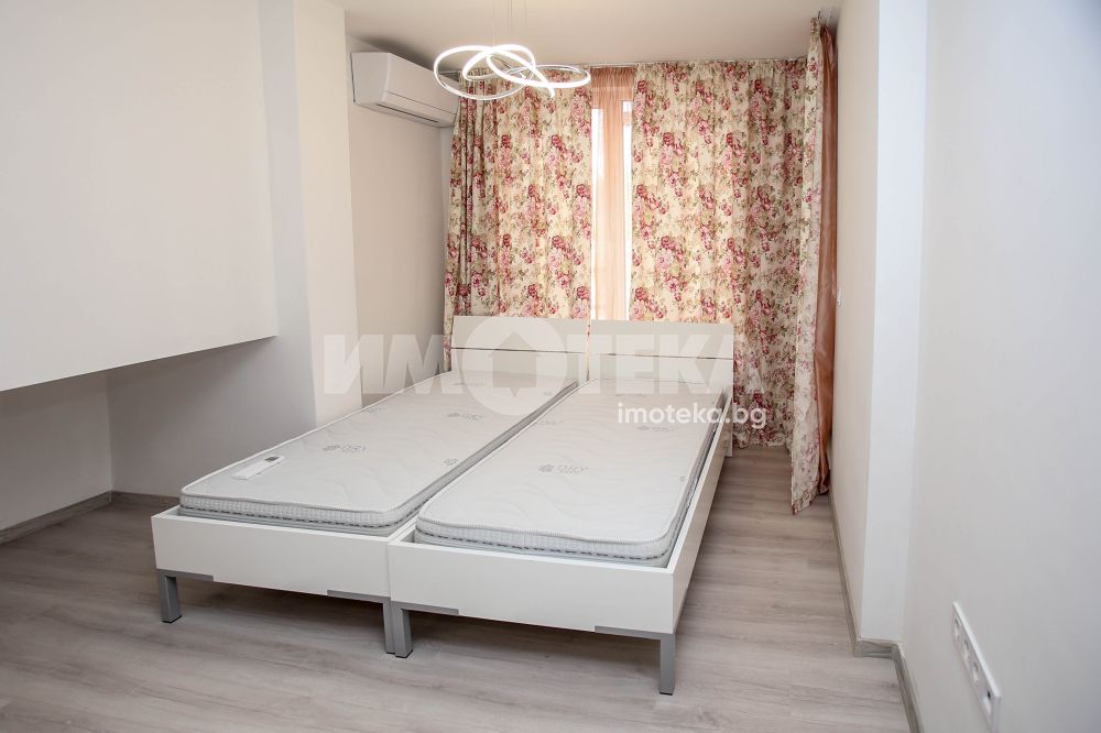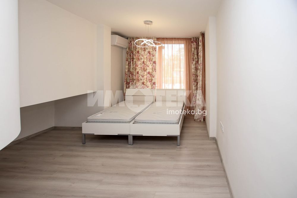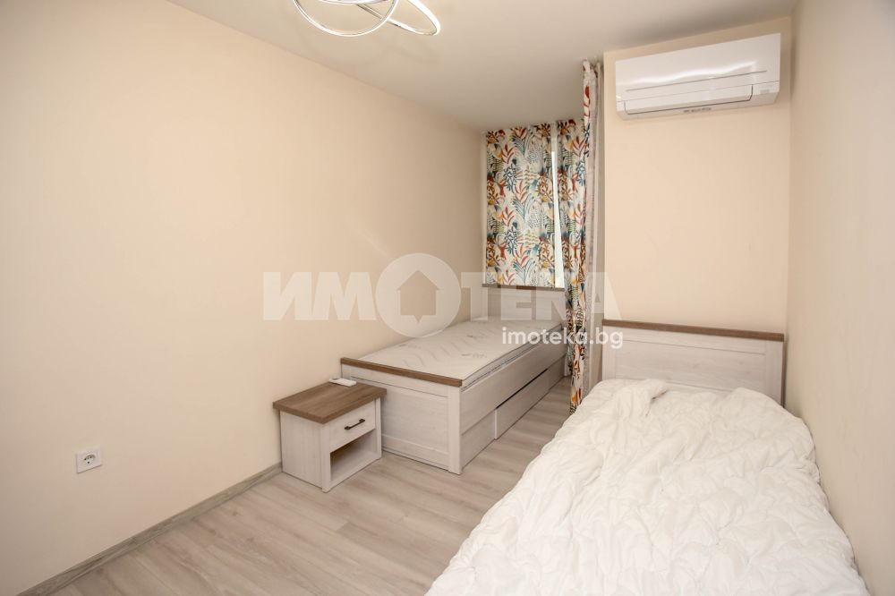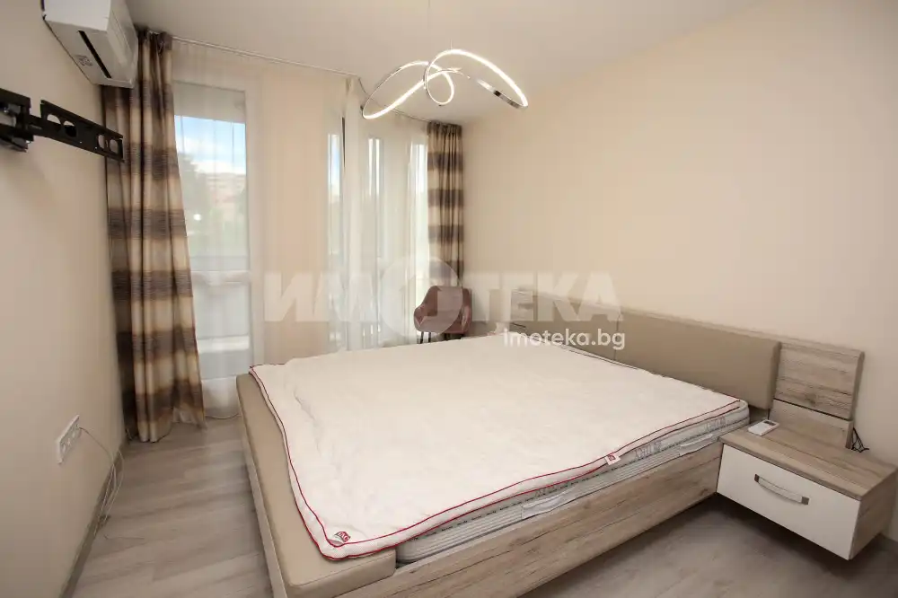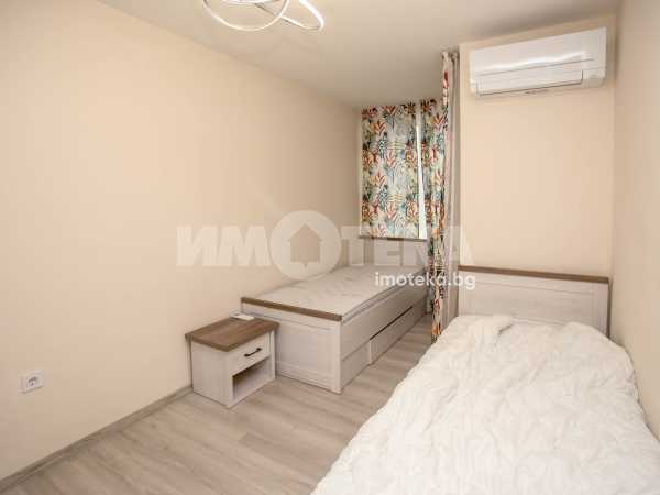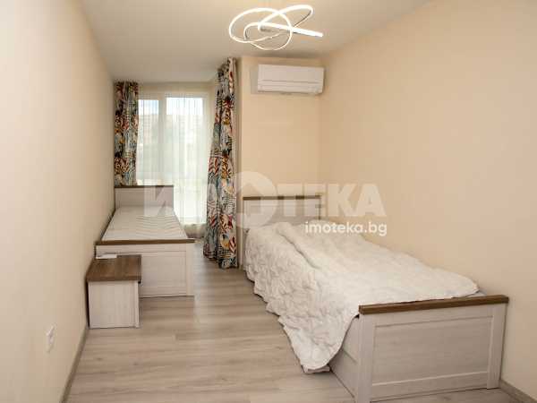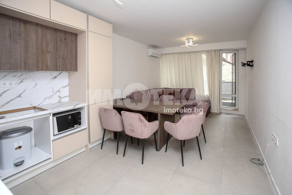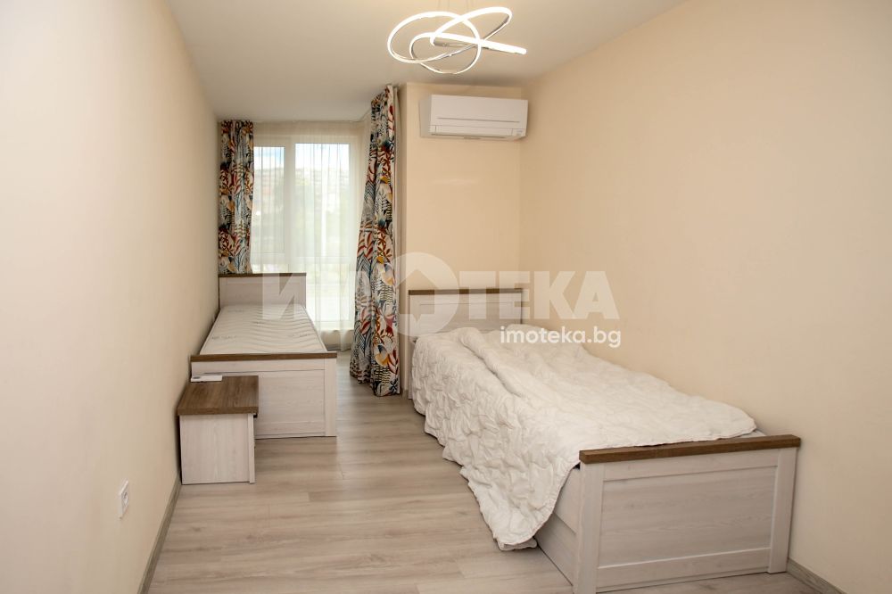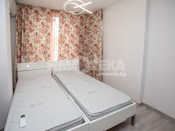 Апартаментът е със следното разпределение: три спални помещения, баня със санитарен възел, самостоятелен санитарен възел, просторна дневна с южно изложение и тераса;