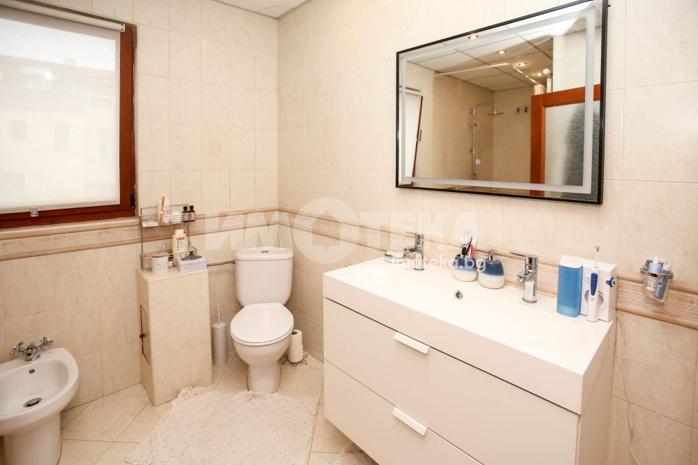 Жилището е с чиста площ от 200 кв.м, разпределени на две нива: първо ниво (152 кв.м) – обхваща целия етаж и се състои от входно антре, дневна, трапезария (кабинет), кухня с трапезария, две спални, баня с тоалетна и балкон; второ ниво (48 кв.м) е обособено като самостоятелно студио, включващо спалня, баня с тоалетна и тераса с красиви гледки. Всички помещения са просторни и светли. Апартаментът е след основен ремонт, има нужда от освежававане.