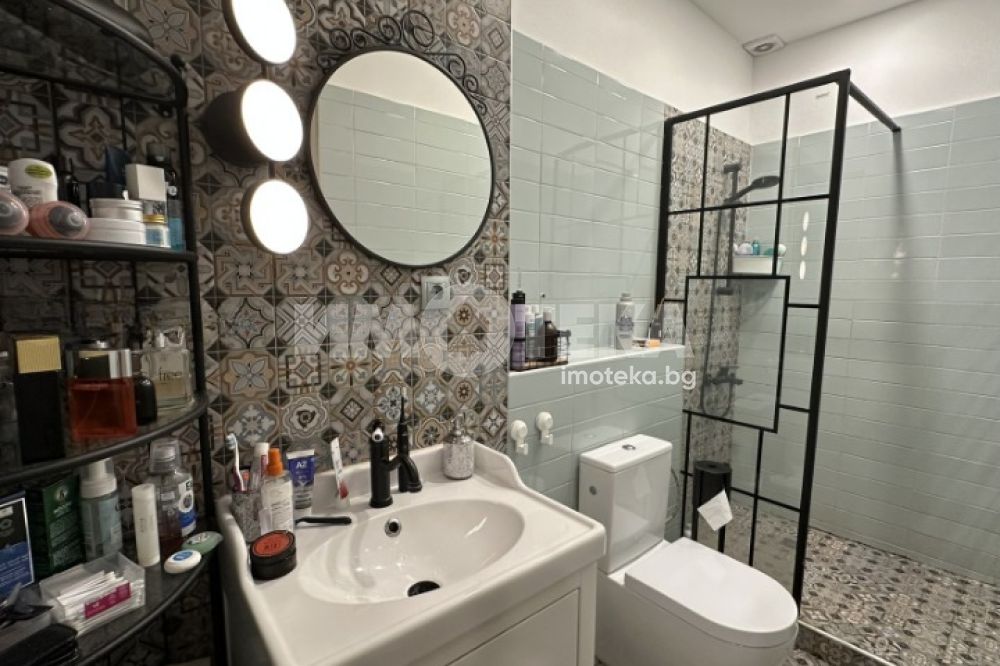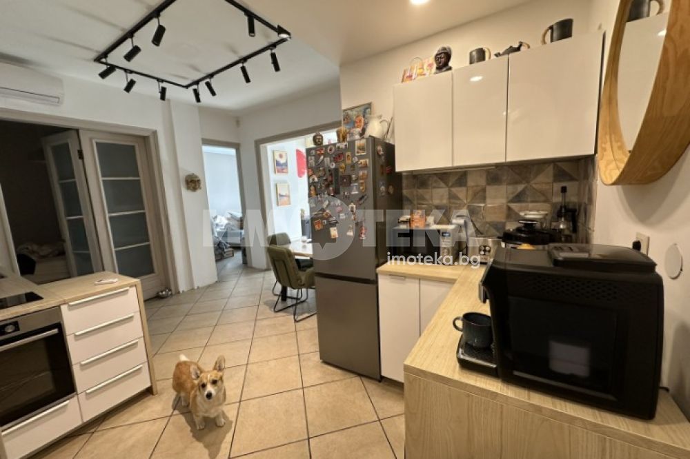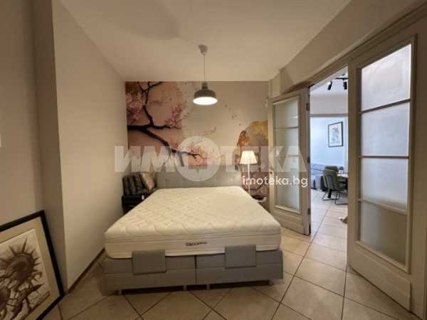 Четиристаен апартамент в санирана тухлена сграда внидеален център. Разпределение: три спални, с голям светъл хол с кухненски бокс, коридор, две бани с тоалетни и голяма тераса към тих вътрешен двор. Разделен на студио и тристаен. Изложение: югозапад-североизток. Към апартамента има таван и мазе. Отлично поддържани общи части.
